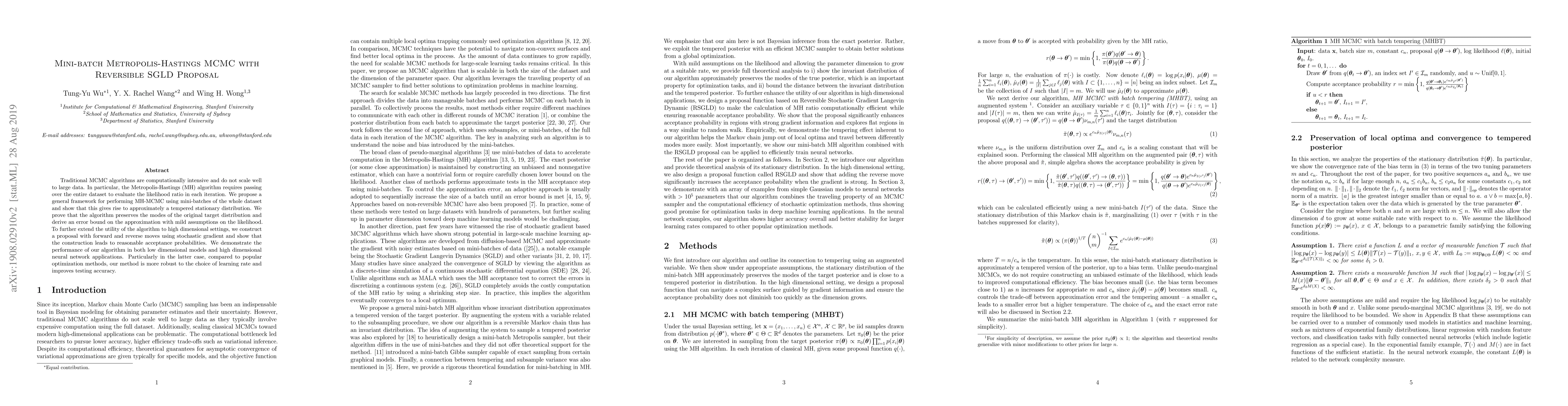 This paper proposes a mini-batch Metropolis-Hastings MCMC algorithm that scales better for large datasets by using mini-batches instead of the entire dataset. The algorithm maintains the modes of the target distribution and demonstrates improved performance in high-dimensional neural network applications, showing robustness to learning rate and better accuracy.