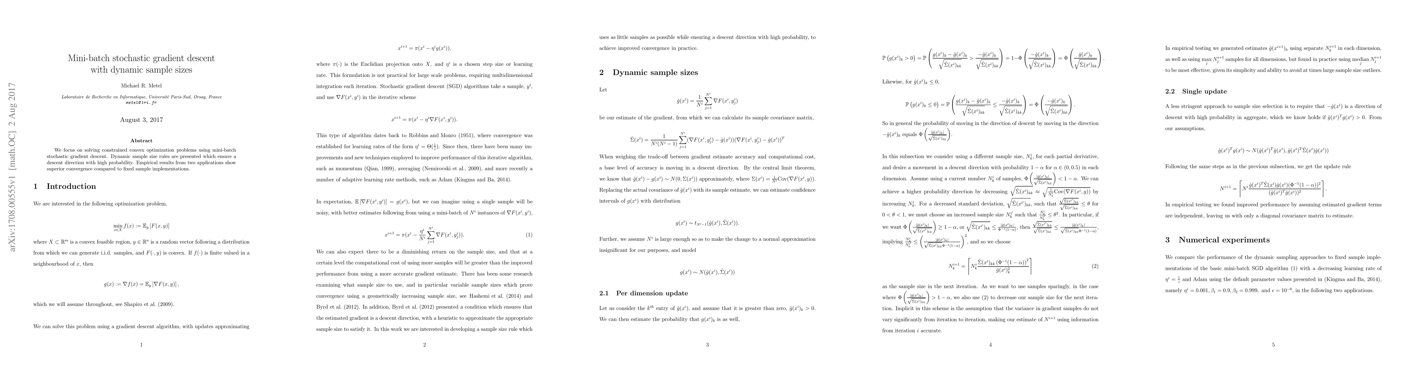 We focus on solving constrained convex optimization problems using mini-batch stochastic gradient descent. Dynamic sample size rules are presented which ensure a descent direction with high probability. Empirical results from two applications show superior convergence compared to fixed sample implementations.