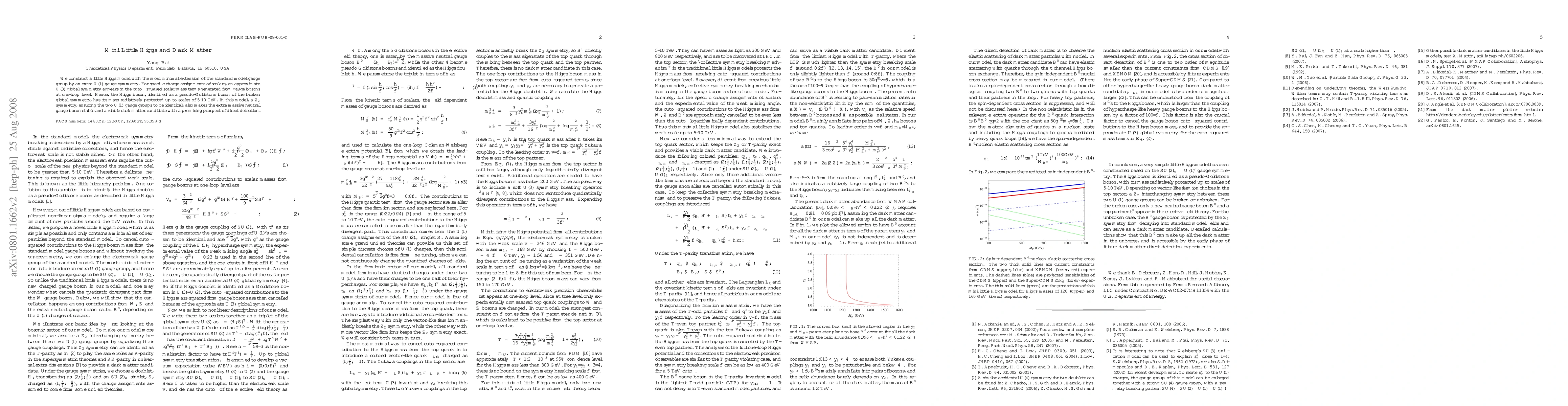 A little Higgs model with a U(1) gauge symmetry suggests a stable dark matter candidate that could be detected directly, and the Higgs boson is protected from radiative decay up to 10 TeV.