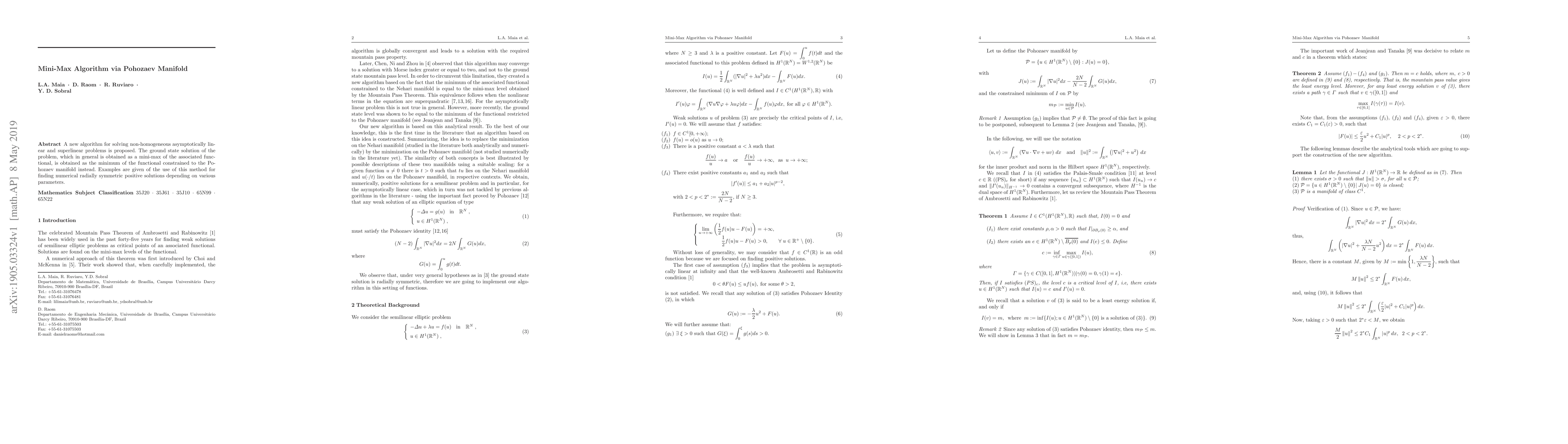The paper presents a novel algorithm, Mini-Max via Pohozaev Manifold, for solving complex non-homogeneous asymptotically linear and superlinear problems. This method finds the ground state solution as the minimum of a functional constrained to the Pohozaev manifold, offering a more efficient way to obtain numerical, radially symmetric, and parameter-dependent positive solutions.