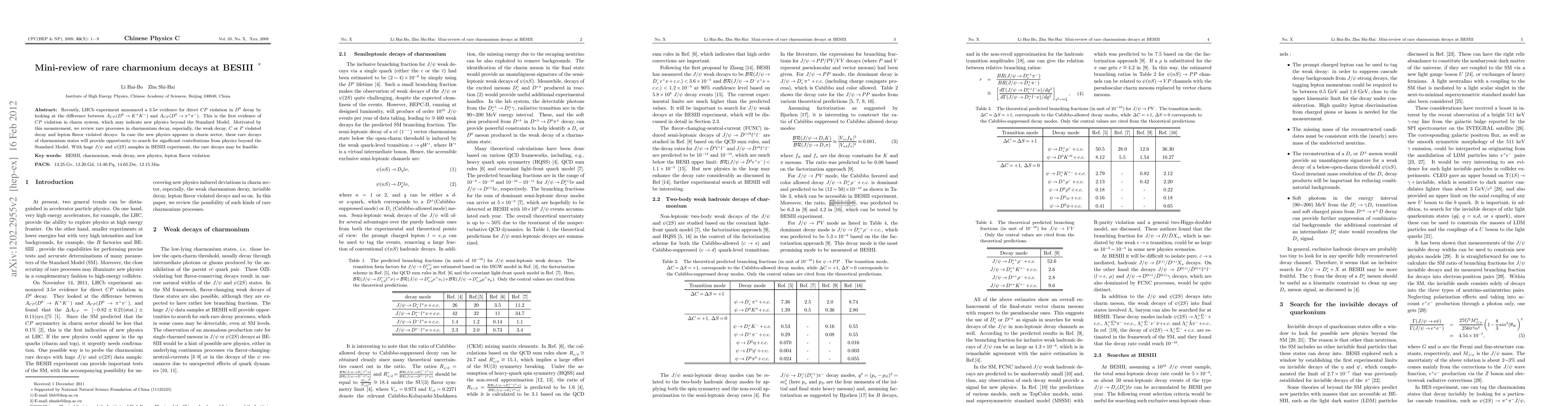 Recently, LHCb experiment announced a 3.5$\sigma$ evidence for direct CP violation in $D^0$ decay by looking at the difference between $A_{CP}(D^0\rightarrow K^+K^-)$ and $A_{CP}(D^0\rightarrow \pi^+\pi^-)$. This is the first evidence of CP violation in charm system, which may indicate new physics beyond the Standard Model. Motivated by this measurement, we review rare processes in charmonium decay, especially, the weak decay, $C$ or $P$ violated decay and lepton flavor violated decays. In case the new physics appears in charm sector, these rare decays of charmonium states will provide opportunity to search for significant contributions from physics beyond the Standard Model. With huge $J/\psi$ and $\psi(2S)$ samples in BESIII experiment, the rare decays may be feasible.