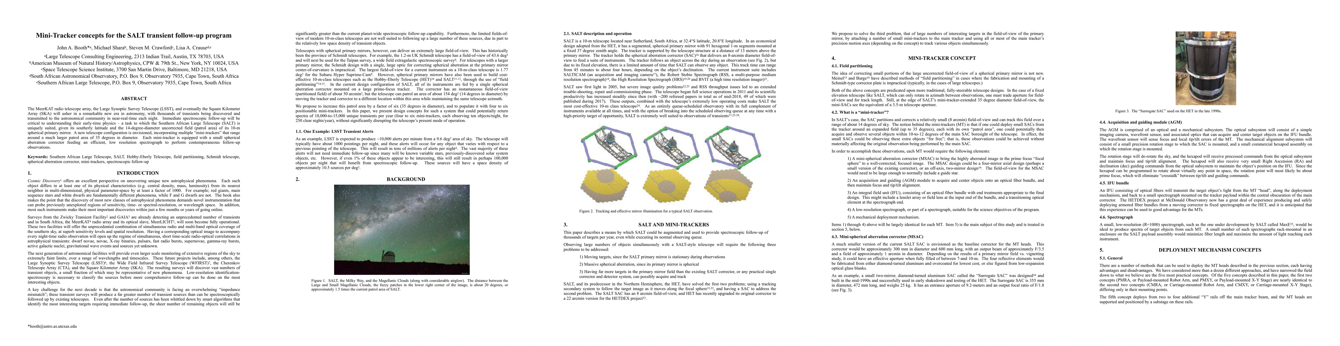 The MeerKAT radio telescope array, the Large Synoptic Survey Telescope (LSST), and eventually the Square Kilometer Array (SKA) will usher in a remarkable new era in astronomy, with thousands of transients being discovered and transmitted to the astronomical community in near-real-time each night. Immediate spectroscopic follow-up will be critical to understanding their early-time physics - a task to which the Southern African Large Telescope (SALT) is uniquely suited, given its southerly latitude and the 14-degree-diameter uncorrected field (patrol area) of its 10-m spherical primary mirror. A new telescope configuration is envisioned, incorporating multiple mini-trackers that range around a much larger patrol area of 35 degrees in diameter. Each mini-tracker is equipped with a small spherical aberration corrector feeding an efficient, low resolution spectrograph to perform contemporaneous follow-up observations.