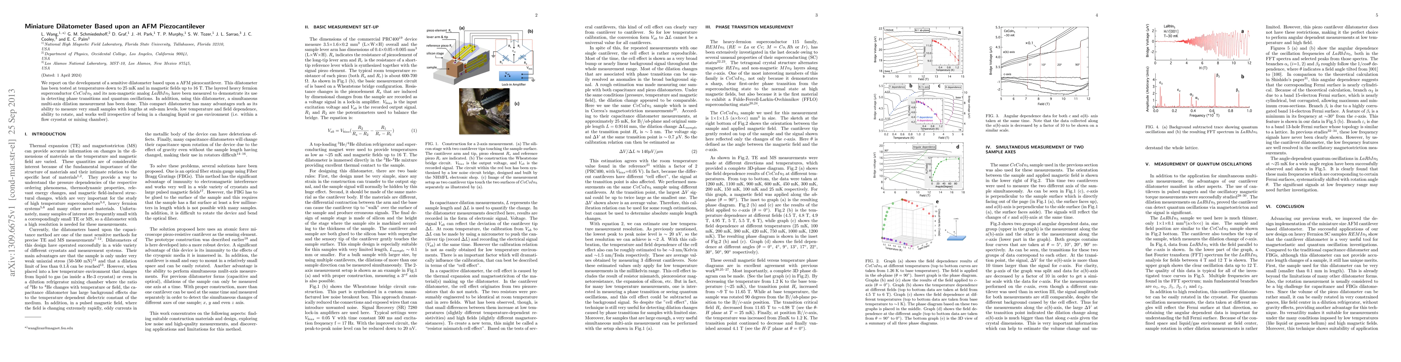 This paper details a novel miniature dilatometer based on an AFM piezocantilever, capable of precise measurements at low temperatures and high magnetic fields. It demonstrates the device's effectiveness in detecting phase transitions and quantum oscillations in heavy fermion superconductors.