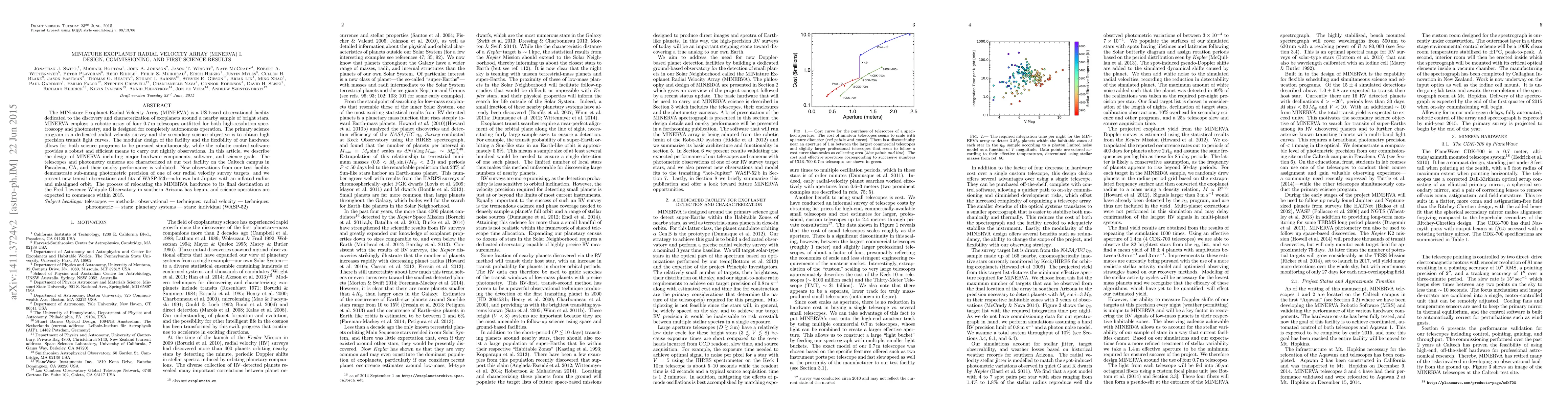 The MINiature Exoplanet Radial Velocity Array (MINERVA) is a US-based observational facility dedicated to the discovery and characterization of exoplanets around a nearby sample of bright stars. MINERVA employs a robotic array of four 0.7 m telescopes outfitted for both high-resolution spectroscopy and photometry, and is designed for completely autonomous operation. The primary science program is a dedicated radial velocity survey and the secondary science objective is to obtain high precision transit light curves. The modular design of the facility and the flexibility of our hardware allows for both science programs to be pursued simultaneously, while the robotic control software provides a robust and efficient means to carry out nightly observations. In this article, we describe the design of MINERVA including major hardware components, software, and science goals. The telescopes and photometry cameras are characterized at our test facility on the Caltech campus in Pasadena, CA, and their on-sky performance is validated. New observations from our test facility demonstrate sub-mmag photometric precision of one of our radial velocity survey targets, and we present new transit observations and fits of WASP-52b -- a known hot-Jupiter with an inflated radius and misaligned orbit. The facility is now in the process of being relocated to its final destination at the Fred Lawrence Whipple Observatory in southern Arizona, and science operations will begin in 2015.