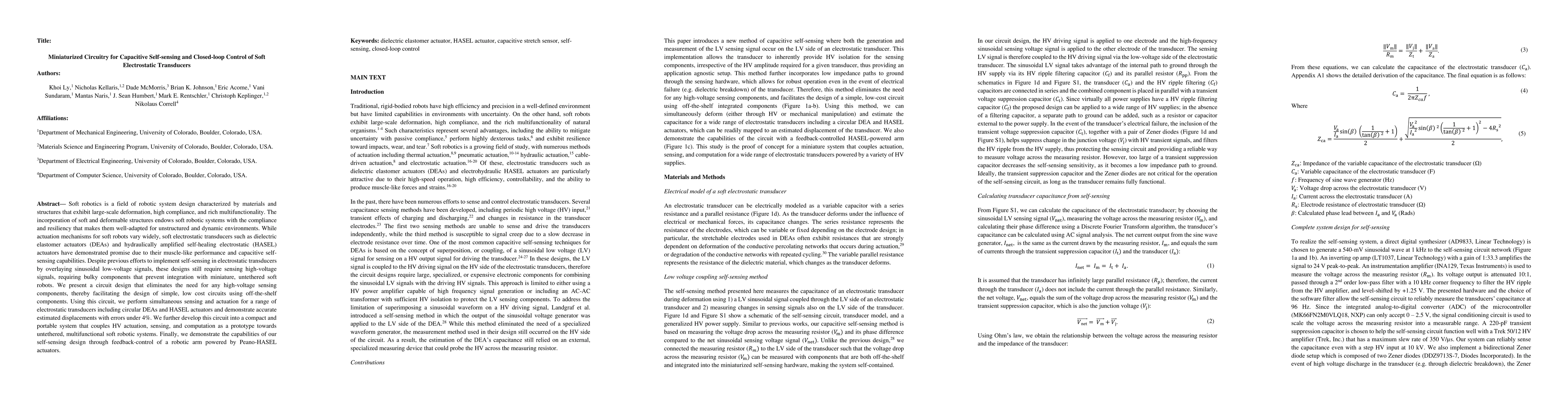 The development of a compact and accurate self-sensing circuit for stretchable capacitive sensors, enabling precise control and sensing capabilities in soft robotics and stretchable electronics.