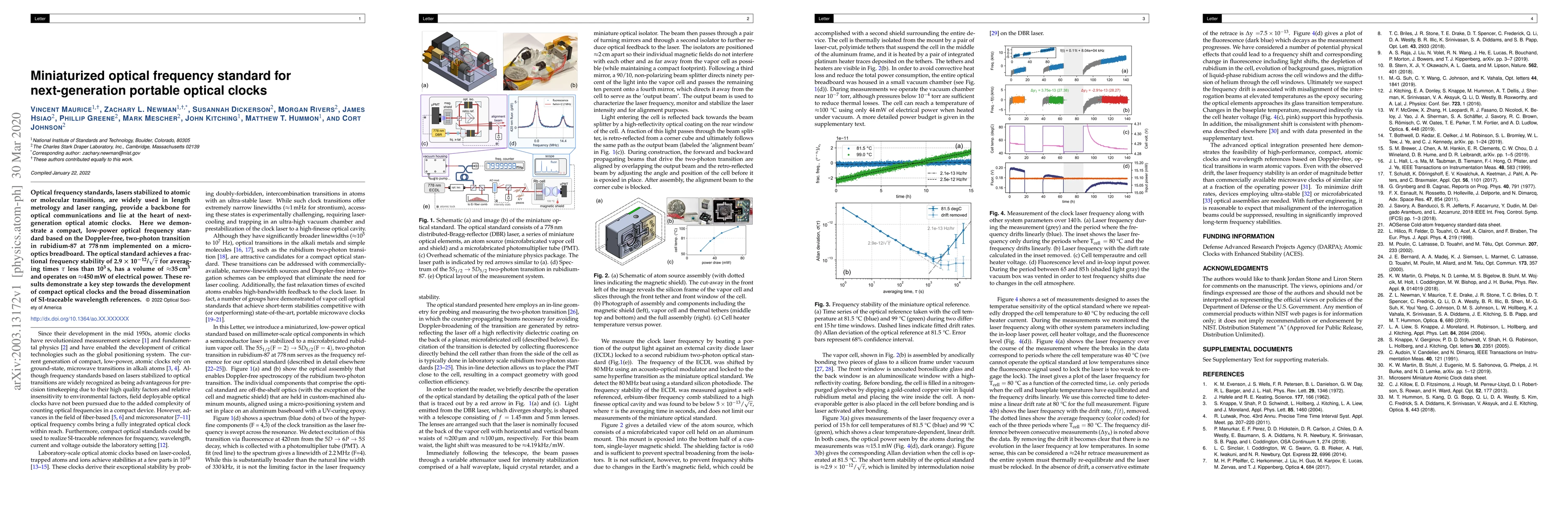 This paper presents a compact, low-power optical frequency standard based on rubidium-87's two-photon transition at 778 nm, achieving a fractional frequency stability of 2.9x10$^{-12}$/$\sqrt{\tau}$ for averaging times less than 1000 seconds, paving the way for portable optical atomic clocks and SI-traceable wavelength references.