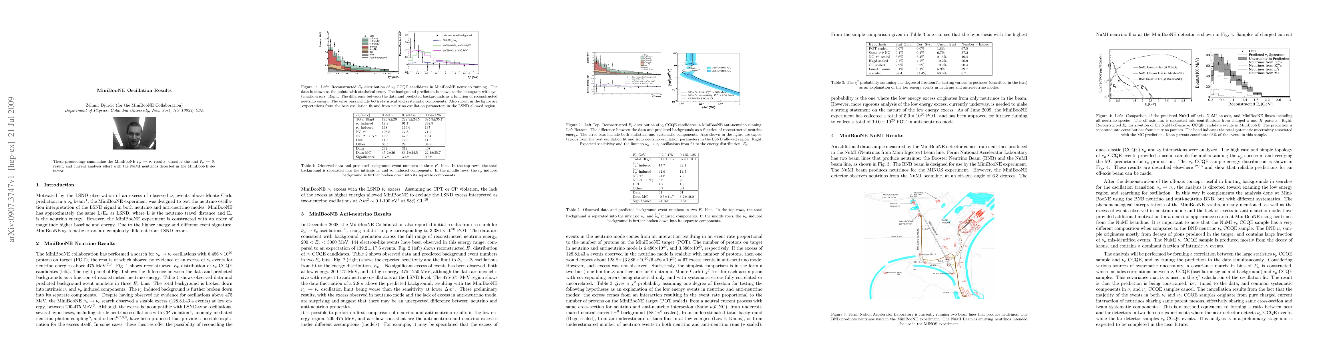 The MiniBooNE experiment reports initial results on muon neutrino to electron neutrino oscillations and presents the first observation of muon antineutrino to electron antineutrino oscillations using NuMI neutrinos. Ongoing analysis efforts continue to refine these findings.