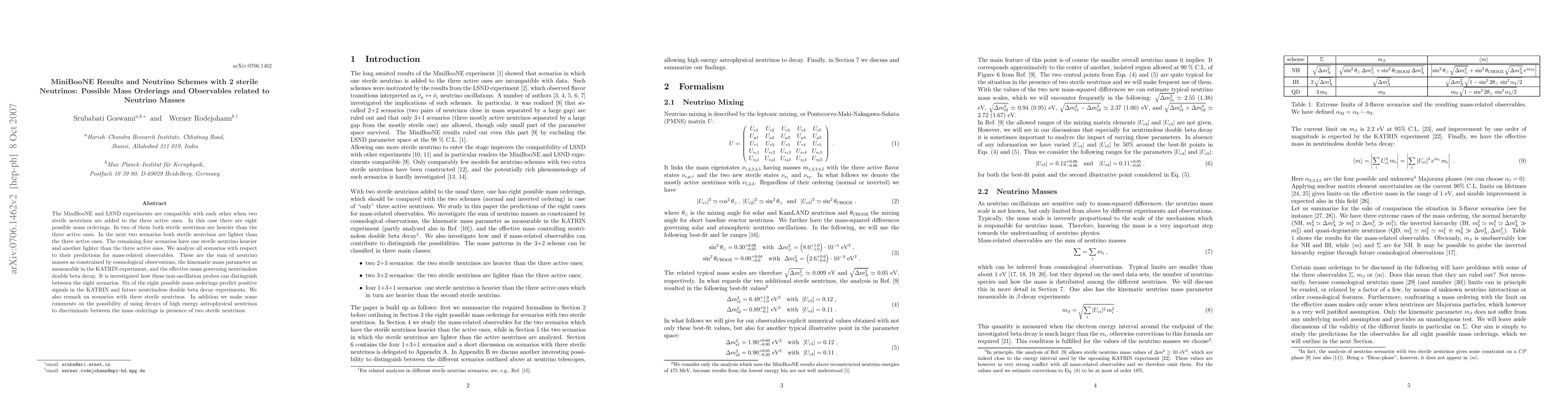 This paper explores the compatibility of MiniBooNE and LSND experiments with two sterile neutrinos, identifying eight possible mass ordering scenarios. It analyzes these scenarios' predictions for mass-related observables like sum of neutrino masses, KATRIN kinematic mass, and neutrinoless double beta decay effective mass, finding six scenarios predict positive signals in KATRIN and future neutrinoless double beta decay experiments. The paper also touches on scenarios with three sterile neutrinos and potential use of high-energy astrophysical neutrino decays for discriminating mass orderings.