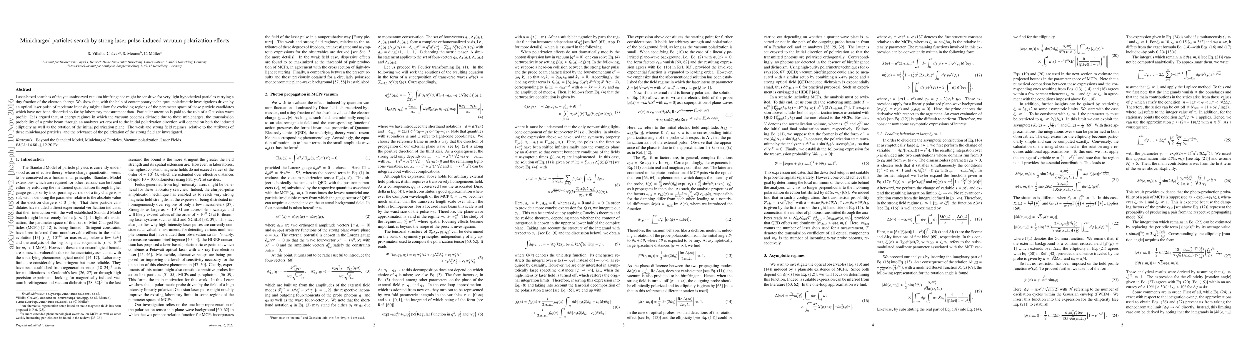 This paper explores the potential of laser-induced vacuum polarization to detect hypothetical minicharged particles via birefringence. It demonstrates that moderate-intensity laser pulses can exclude certain regions of the parameter space for these particles, emphasizing the significance of Gaussian wave profiles and the effects of induced ellipticity and polarization rotation.
