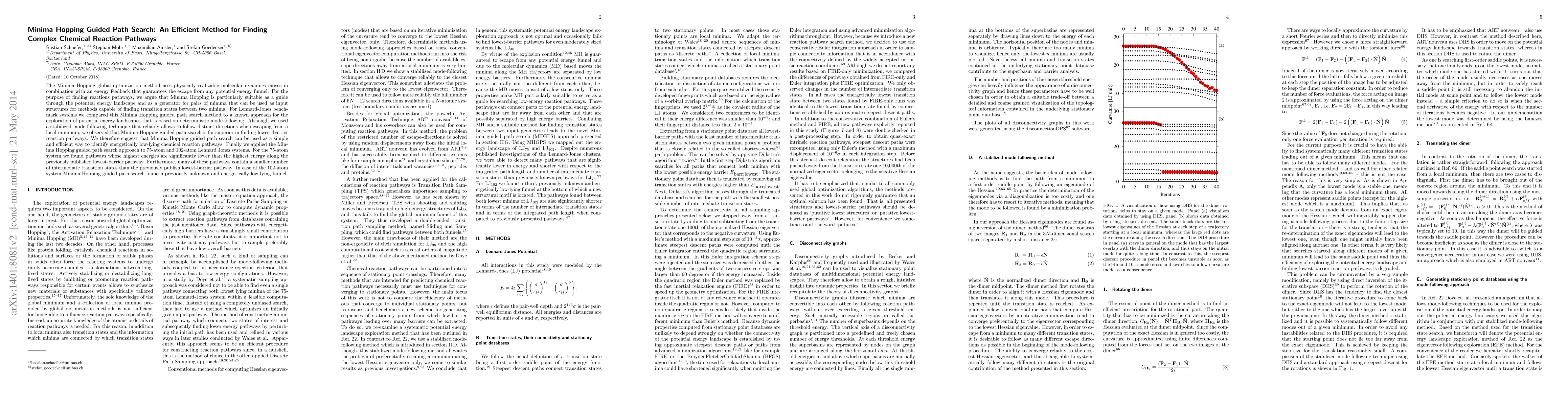 The Minima Hopping method efficiently identifies complex chemical reaction pathways by combining molecular dynamics with energy feedback, outperforming deterministic mode-following in finding low-barrier pathways. Applied to Lennard-Jones systems, it discovered significantly lower-energy pathways with fewer transition states compared to previously known routes.