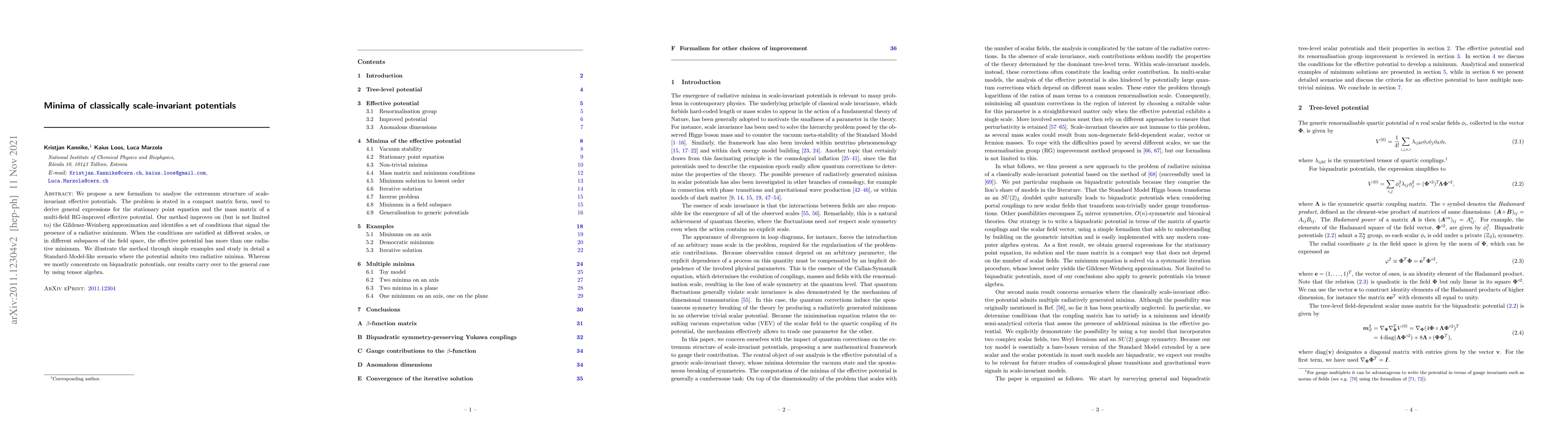 We propose a new formalism to analyse the extremum structure of scale-invariant effective potentials. The problem is stated in a compact matrix form, used to derive general expressions for the stationary point equation and the mass matrix of a multi-field RG-improved effective potential. Our method improves on (but is not limited to) the Gildener-Weinberg approximation and identifies a set of conditions that signal the presence of a radiative minimum. When the conditions are satisfied at different scales, or in different subspaces of the field space, the effective potential has more than one radiative minimum. We illustrate the method through simple examples and study in detail a Standard-Model-like scenario where the potential admits two radiative minima. Whereas we mostly concentrate on biquadratic potentials, our results carry over to the general case by using tensor algebra.