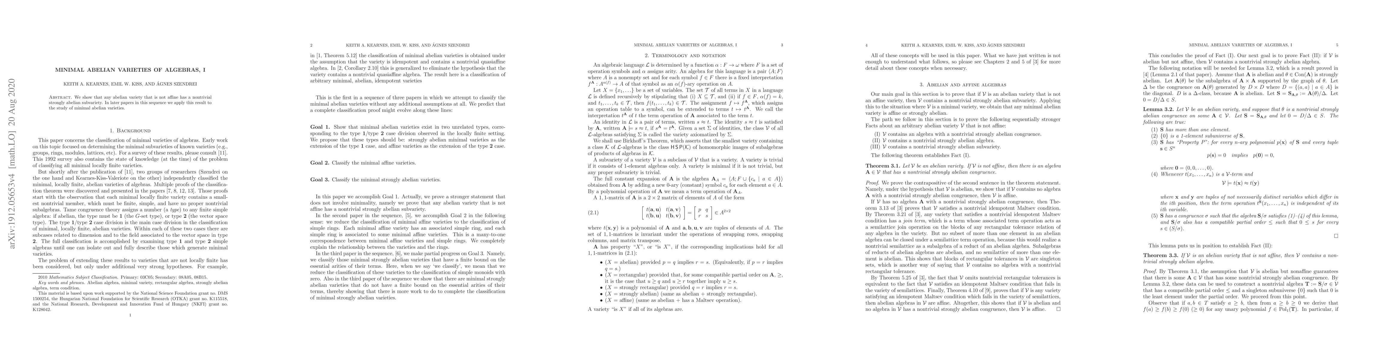 Summary: This paper demonstrates that non-affine abelian varieties contain nontrivial strongly abelian subvarieties. Subsequent works will utilize this finding to explore the concept of minimal abelian varieties.