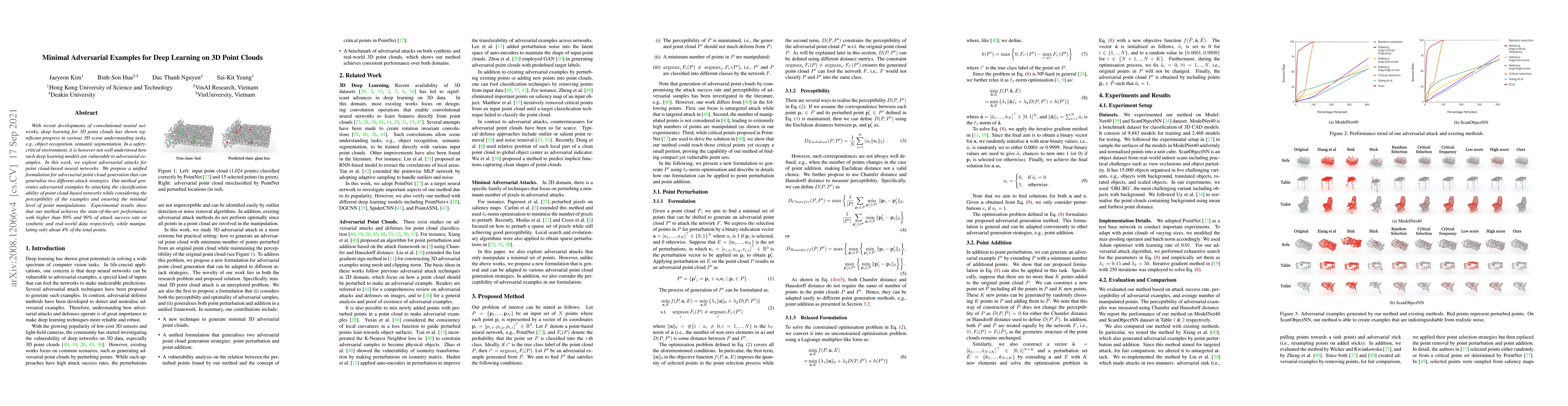 Researchers developed a method to generate minimal adversarial examples for deep learning models on 3D point clouds, showing state-of-the-art attack success rates with only 4% point manipulation.