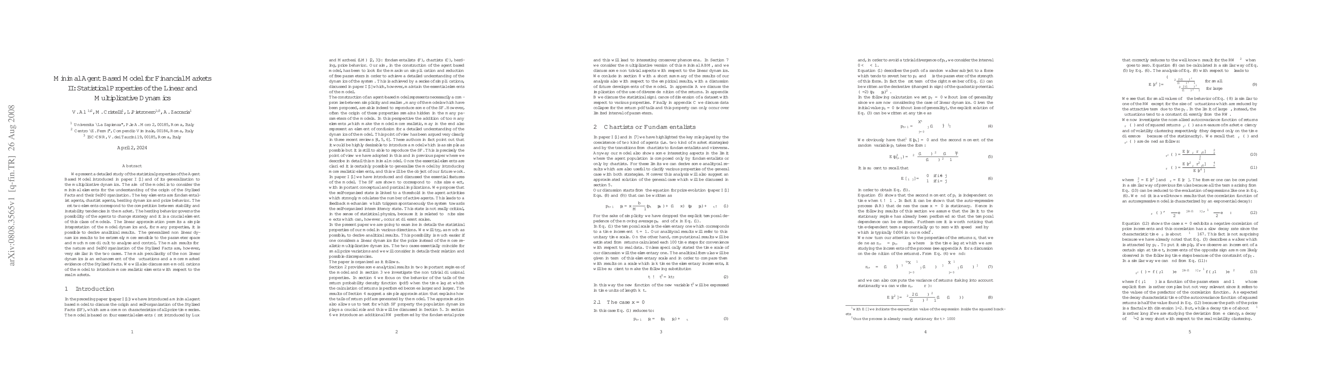 This research explores a minimal Agent Based Model for financial markets, focusing on linear and multiplicative dynamics. It highlights the model's statistical properties, emphasizing fundamentalist and chartist agents, herding behavior, and price fluctuations. The linear approximation offers analytical results, while non-linear dynamics, though more complex, show enhanced fluctuations and more pronounced stylized facts, with potential realistic market modifications discussed.