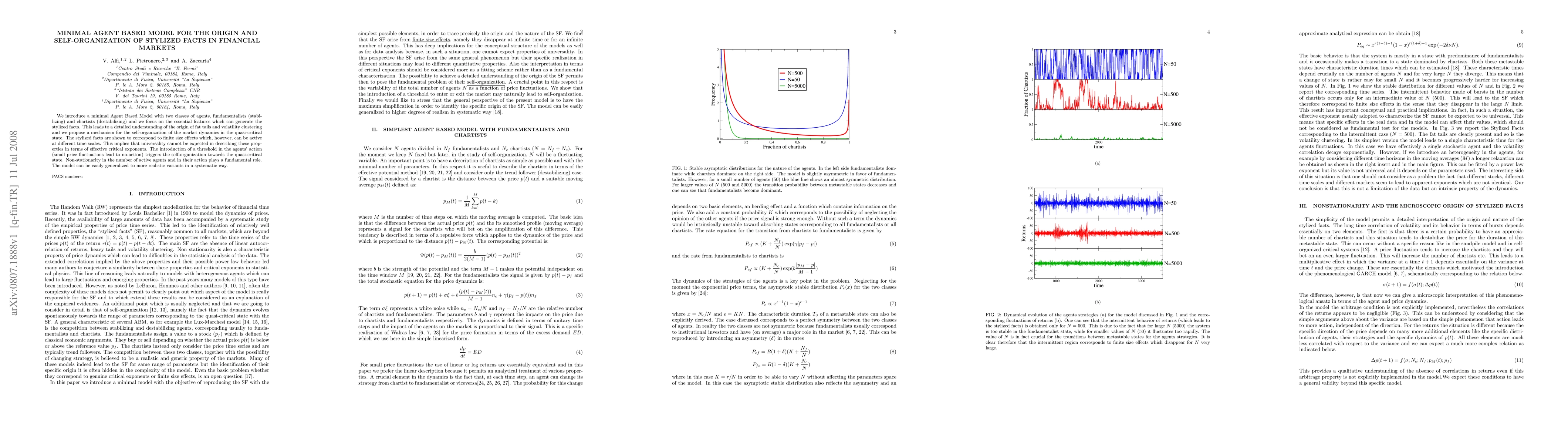 This paper presents a minimal Agent Based Model to explore the origin and self-organization of financial market stylized facts, focusing on fundamentalist and chartist agents. It reveals the mechanisms behind fat tails and volatility clustering, proposing a quasi-critical state for market dynamics and emphasizing the role of non-stationarity in active agents.