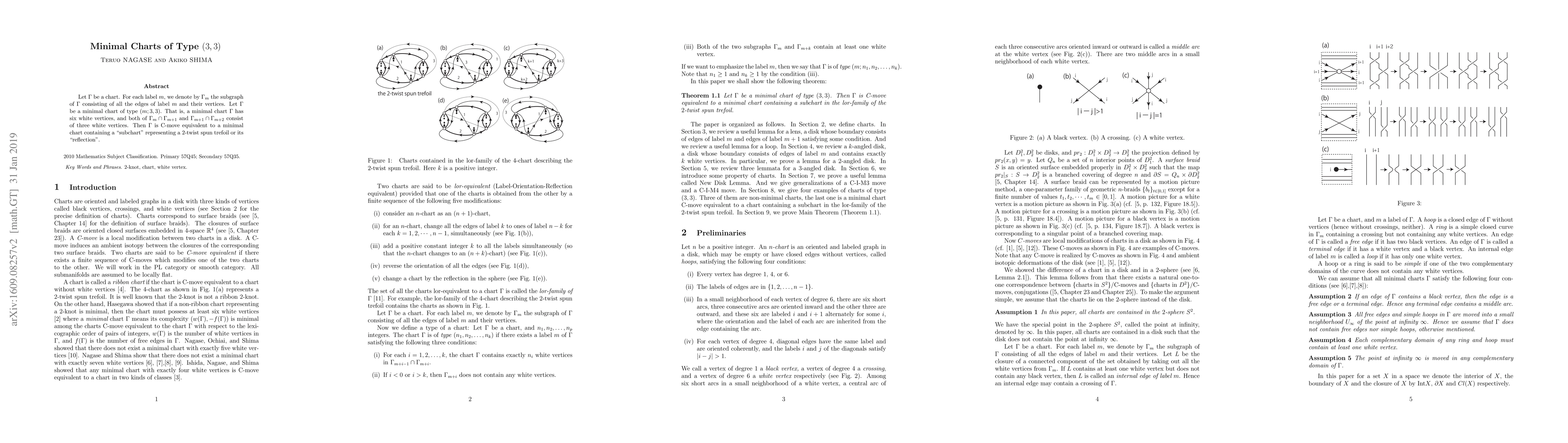 This paper investigates minimal charts of type (3,3) and demonstrates that any such chart, with specific structural properties, is C-move equivalent to a chart containing a "subchart" representing a 2-twist spun trefoil or its reflection.