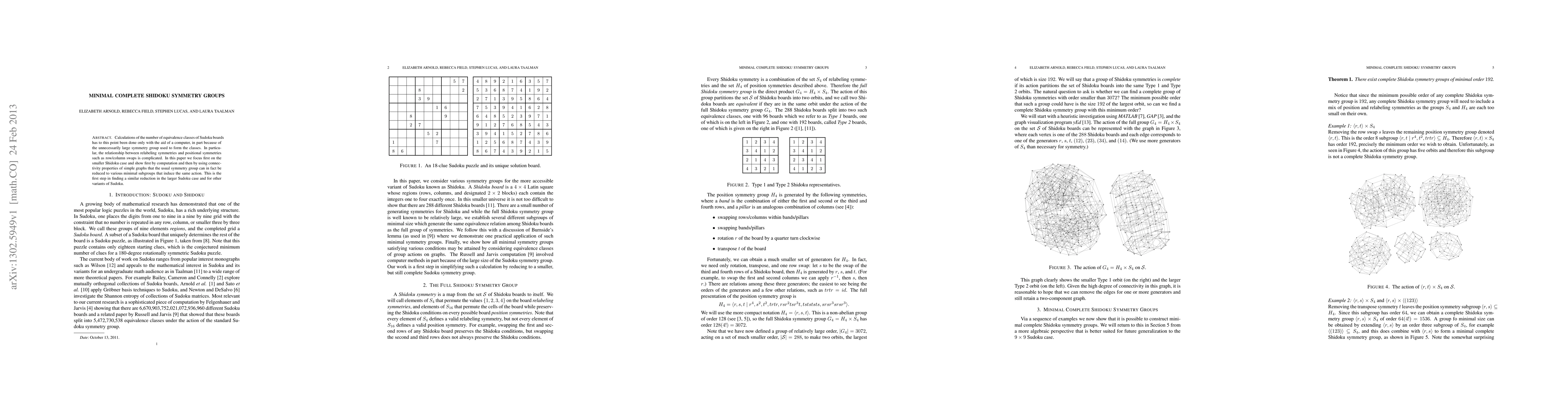 Calculations of the number of equivalence classes of Sudoku boards has to this point been done only with the aid of a computer, in part because of the unnecessarily large symmetry group used to form the classes. In particular, the relationship between relabeling symmetries and positional symmetries such as row/column swaps is complicated. In this paper we focus first on the smaller Shidoku case and show first by computation and then by using connectivity properties of simple graphs that the usual symmetry group can in fact be reduced to various minimal subgroups that induce the same action. This is the first step in finding a similar reduction in the larger Sudoku case and for other variants of Sudoku.