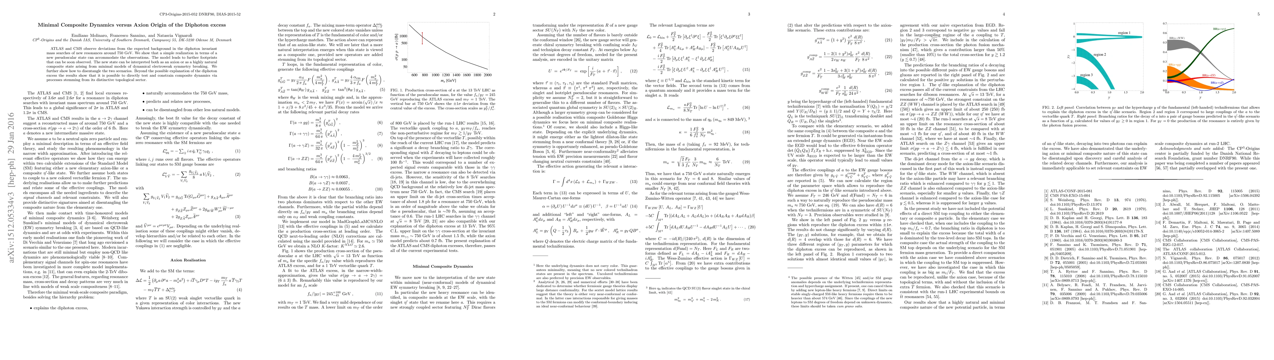ATLAS and CMS observe deviations from the expected background in the diphoton invariant mass searches of new resonances around 750 GeV. We show that a simple realization in terms of a new pseudoscalar state can accommodate the observations. The model leads to further footprints that can be soon observed. The new state can be interpreted both as an axion or as a {highly natural} composite state arising from minimal models of dynamical electroweak symmetry breaking. We further show how to disentangle the two scenarios. Beyond the possible explanation of the diphoton excess the results show that it is possible to directly test and constrain composite dynamics via processes stemming from its distinctive topological sector.