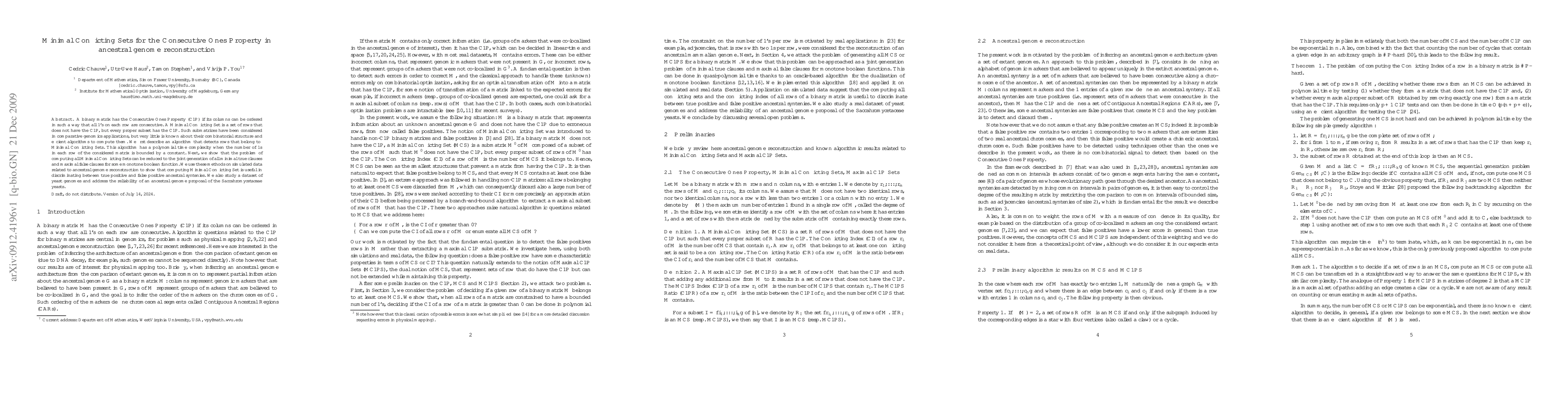 A new algorithm detects rows that belong to Minimal Conflicting Sets in ancestral genome reconstruction, which helps discriminate between true positive and false positive ancestral syntenies.
