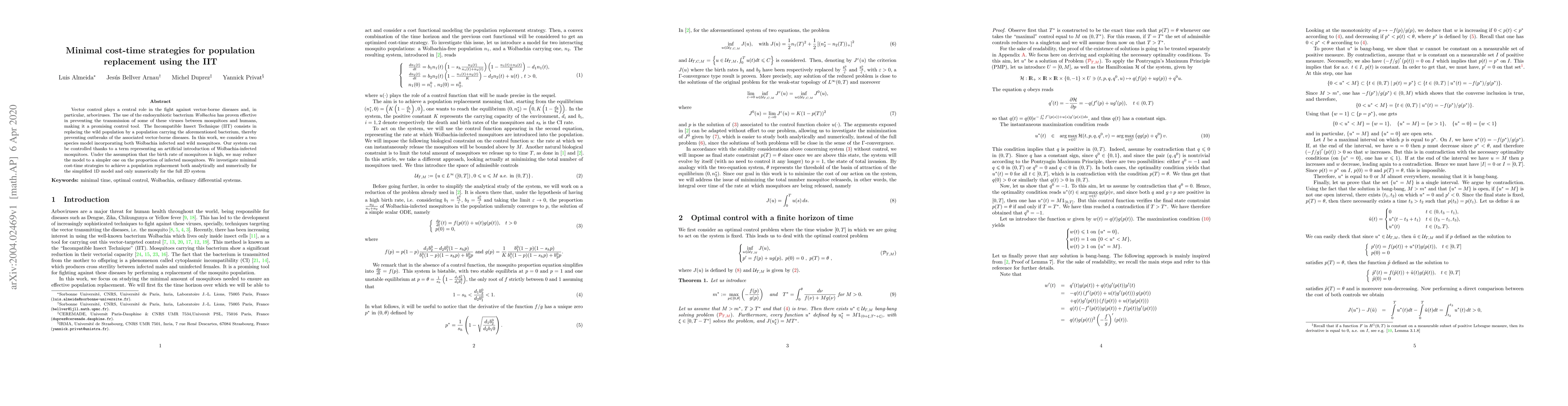 This paper explores cost-effective strategies for replacing wild mosquito populations with Wolbachia-infected mosquitoes to control vector-borne diseases. It uses a simplified model to analytically determine minimal time strategies and a full model to numerically assess the effectiveness of these strategies.