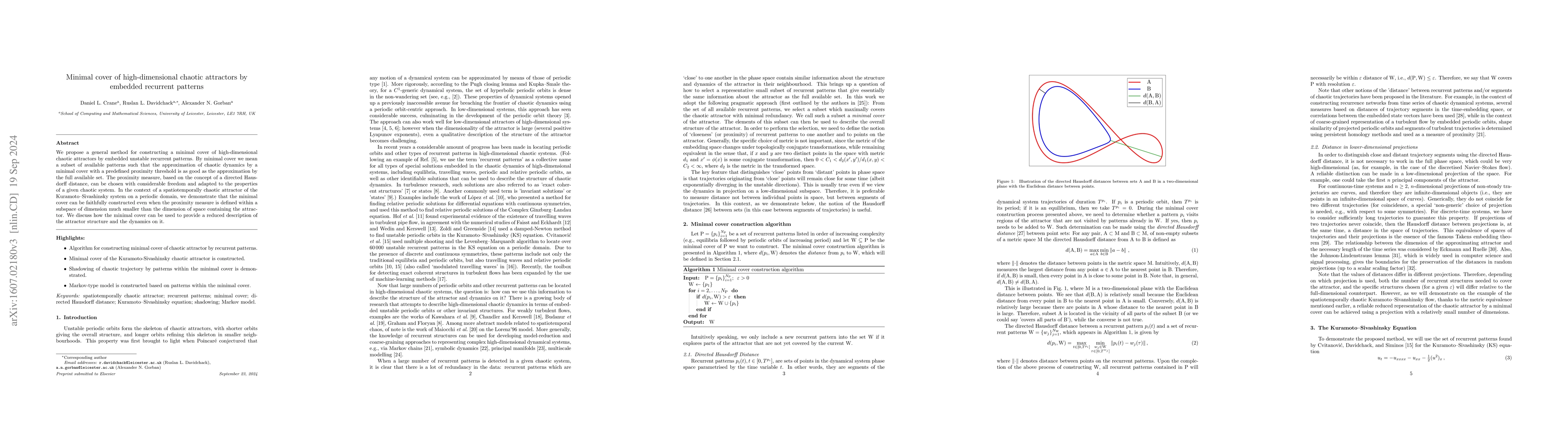 This paper proposes a method to construct a minimal cover of high-dimensional chaotic attractors using embedded coherent structures like periodic orbits, ensuring the approximation quality is comparable to that of the full set. The method is demonstrated on a Kuramoto-Sivashinsky chaotic attractor, showing it can be effectively applied in lower-dimensional subspaces.