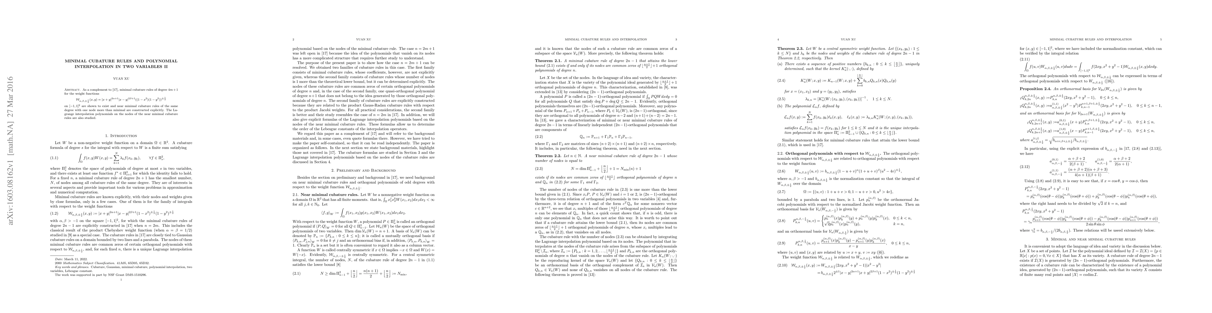 As a complement to \cite{X12}, minimal cubature rules of degree $4m+1$ for the weight functions $$ \mathcal{W}_{\alpha,\beta ,\pm \frac12}(x,y) = |x+y|^{2\alpha+1} |x-y|^{2\beta+1} ((1-x^2)(1-y^2))^{\pm \frac12} $$ on $[-1,1]^2$ are shown to exist and near minimal cubature rules of the same degree with one node more than minimal are constructed explicitly. The Lagrange interpolation polynomials on the nodes of the near minimal cubature rules are also studied.