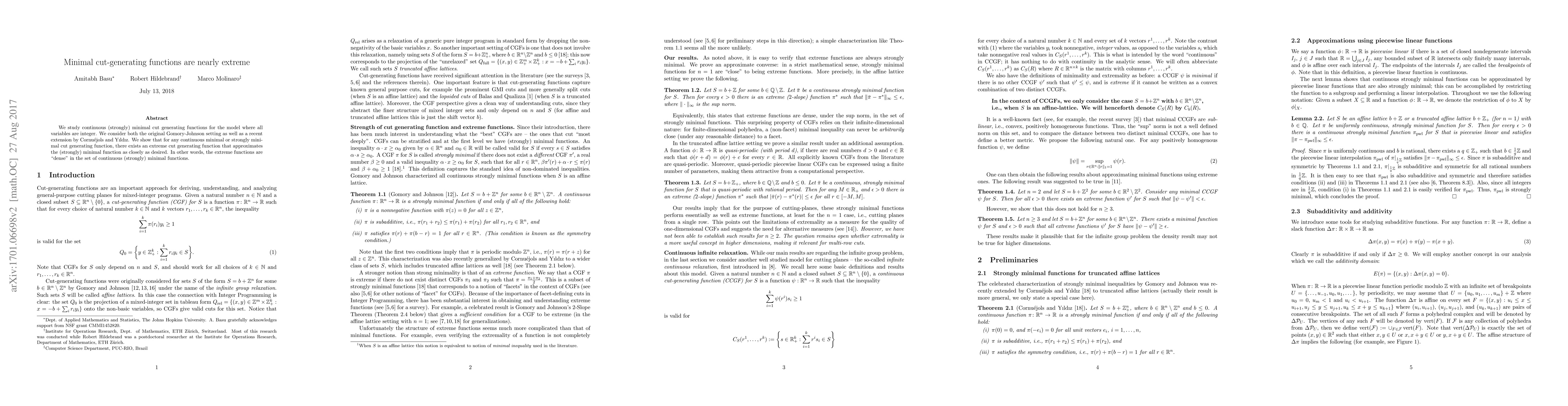 This paper demonstrates that continuous minimal cut-generating functions can be closely approximated by extreme cut-generating functions in both the Gomory-Johnson and Cornuéjols-Yıldız models, indicating that extreme functions are dense within the set of continuous minimal functions.
