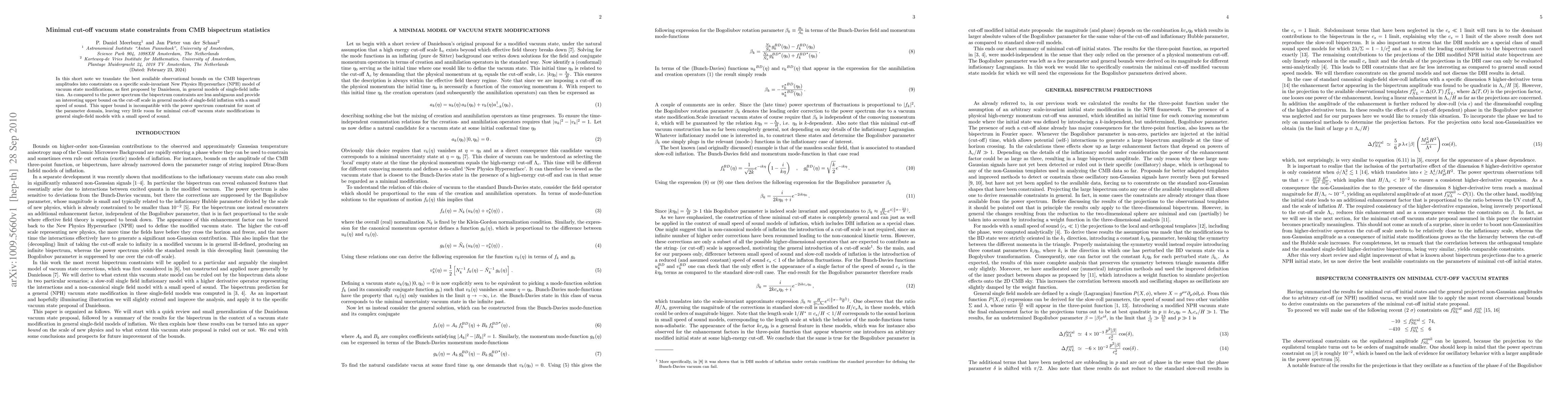 This paper translates observational bounds on the CMB bispectrum into constraints on a vacuum state model proposed by Danielsson, showing that the bispectrum provides a more precise upper bound on the cut-off scale in single-field inflation models with a small speed of sound compared to the power spectrum, significantly limiting minimal vacuum state modifications.