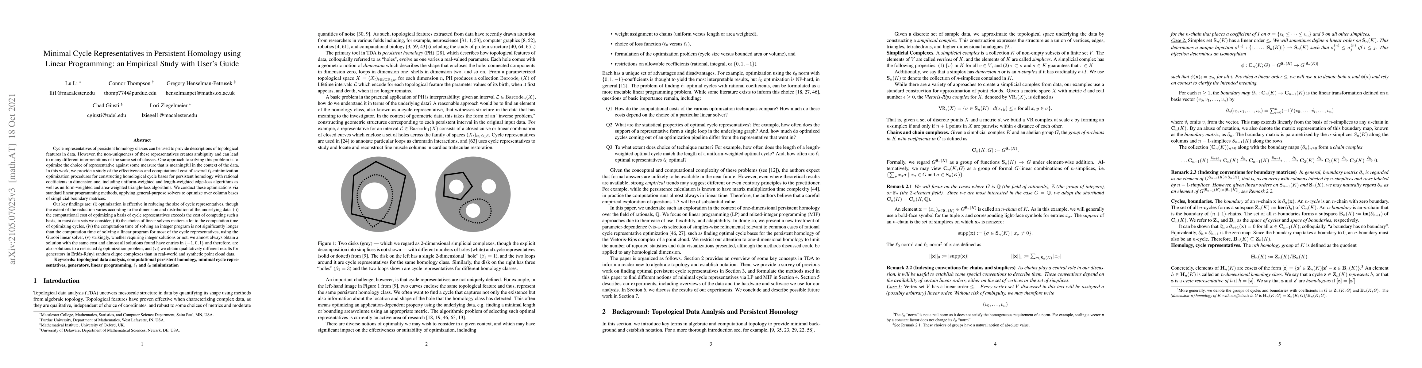 This paper investigates the optimization of minimal cycle representatives in persistent homology using linear programming, focusing on $\ell_1$-minimization procedures. Key findings include the effectiveness of optimization in reducing cycle representative size, the computational cost implications, and the significant impact of linear solver choice on computation time.