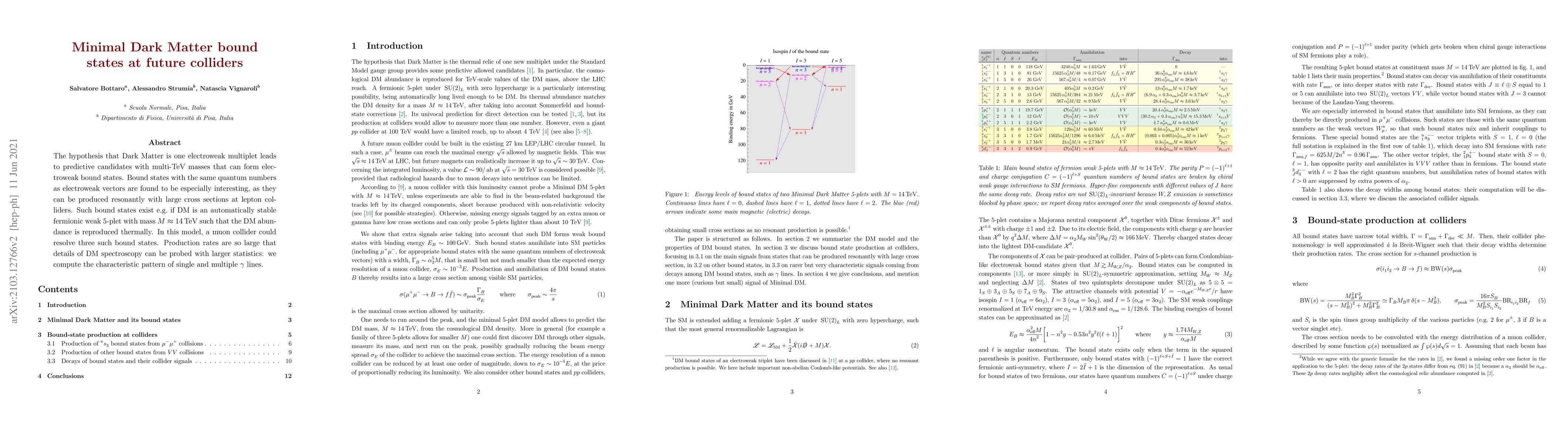Researchers explore the possibility of detecting minimal dark matter bound states at future colliders, suggesting that a muon collider could reveal three distinct states with large production rates.