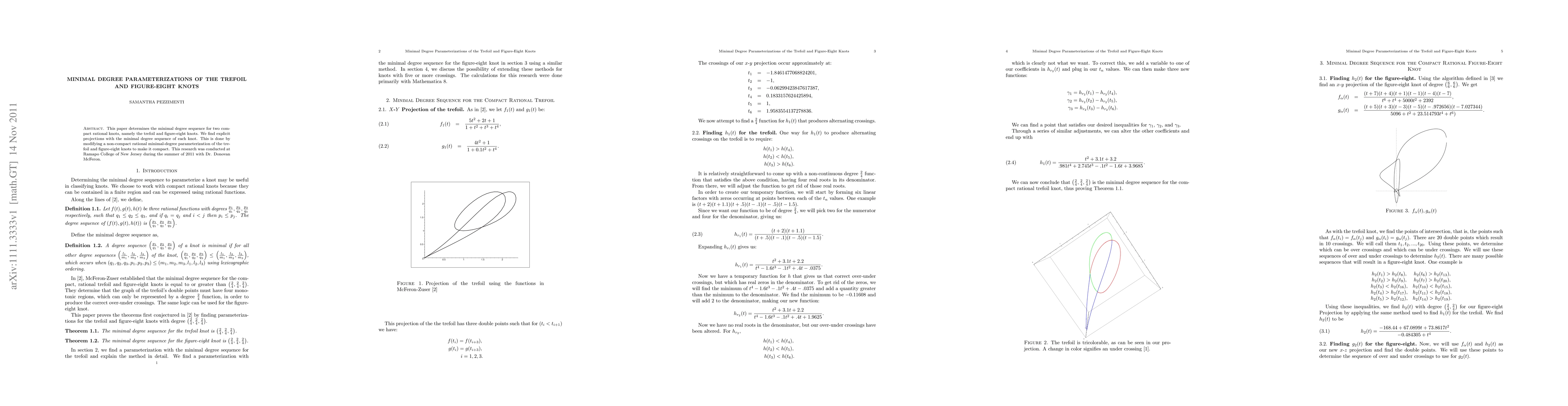 This paper finds the minimal degree sequence for compact rational knots—the trefoil and figure-eight—by adapting non-compact parameterizations, offering explicit projections with the lowest possible degree. The study was completed at Ramapo College of New Jersey in 2011 under Dr. Donovan McFeron.
