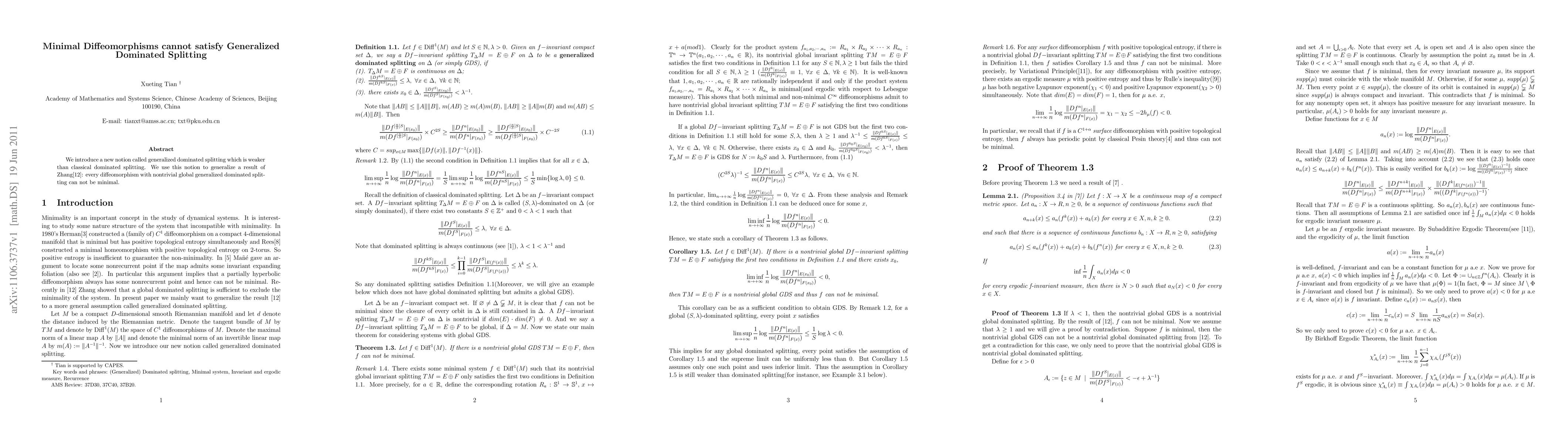 Summary: This paper introduces a new concept called generalized dominated splitting and demonstrates that any diffeomorphism exhibiting nontrivial global generalized dominated splitting cannot be minimal. This extends a previous result by Zhang.