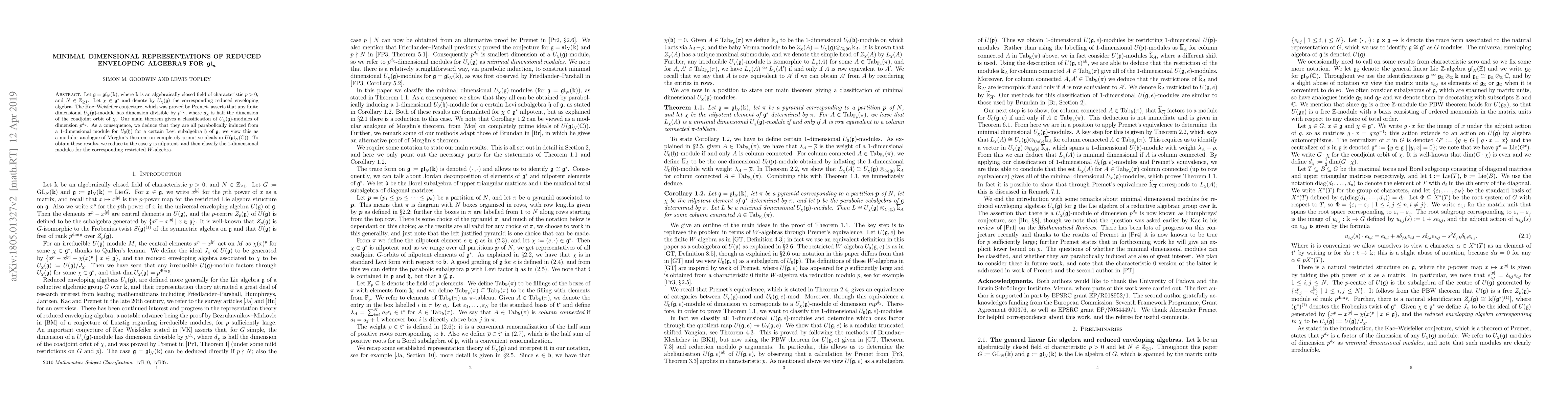 Let $\mathfrak g = \mathfrak{gl}_N(k)$, where $k$ is an algebraically closed field of characteristic $p > 0$, and $N \in \mathbb Z_{\ge 1}$. Let $\chi \in \mathfrak g^*$ and denote by $U_\chi(\mathfrak g)$ the corresponding reduced enveloping algebra. The Kac--Weisfeiler conjecture, which was proved by Premet, asserts that any finite dimensional $U_\chi(\mathfrak g)$-module has dimension divisible by $p^{d_\chi}$, where $d_\chi$ is half the dimension of the coadjoint orbit of $\chi$. Our main theorem gives a classification of $U_\chi(\mathfrak g)$-modules of dimension $p^{d_\chi}$. As a consequence, we deduce that they are all parabolically induced from a 1-dimensional module for $U_0(\mathfrak h)$ for a certain Levi subalgebra $\mathfrak h$ of $\mathfrak g$; we view this as a modular analogue of M{\oe}glin's theorem on completely primitive ideals in $U(\mathfrak{gl}_N(\mathbb C))$. To obtain these results, we reduce to the case $\chi$ is nilpotent, and then classify the 1-dimensional modules for the corresponding restricted $W$-algebra.
