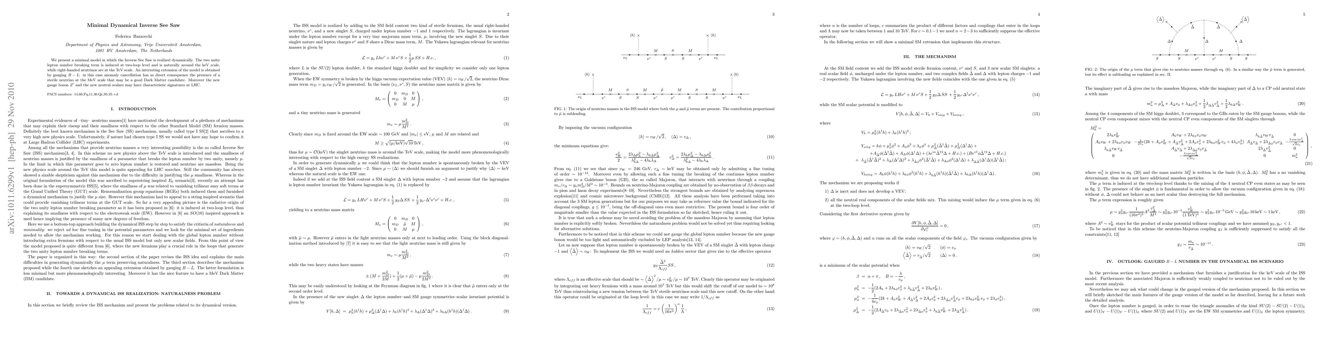 This paper proposes a minimal dynamical model for the Inverse See Saw mechanism, generating keV-scale lepton number breaking at two-loop level with TeV-scale right-handed neutrinos. Gauging B-L leads to a MeV-scale sterile neutrino, a potential Dark Matter candidate, and new particles with LHC signatures.