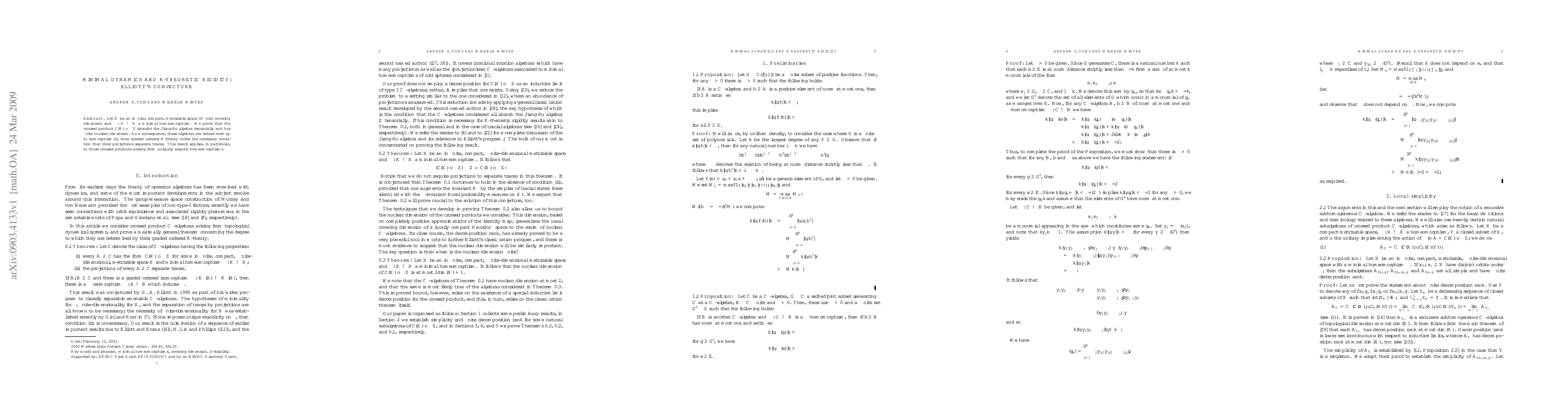 Let X be an infinite, compact, metrizable space of finite covering dimension and h a minimal homeomorphism of X. We prove that the crossed product of C(X) by h absorbs the Jiang-Su algebra tensorially and has finite nuclear dimension. As a consequence, these algebras are determined up to isomorphism by their graded ordered K-theory under the necessary condition that their projections separate traces. This result applies, in particular, to those crossed products arising from uniquely ergodic homeomorphisms.