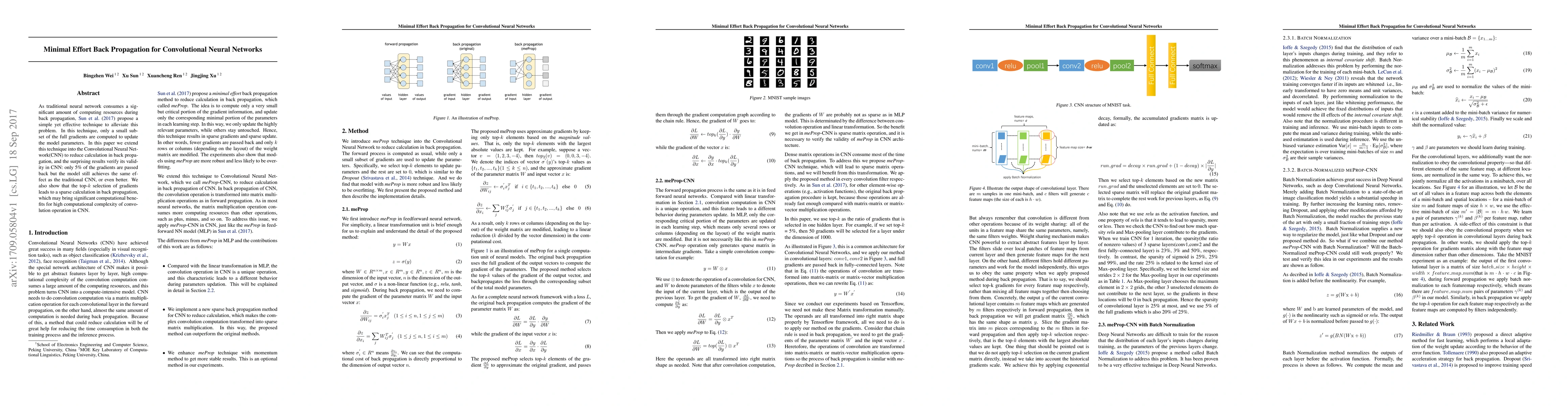 This research paper proposes a minimal effort back propagation technique for Convolutional Neural Networks (CNNs) that reduces computational resources by computing only a small subset of gradients. The results show that using only 5% of the gradients can achieve performance comparable to traditional CNNs, suggesting significant computational benefits, especially for complex convolution operations.