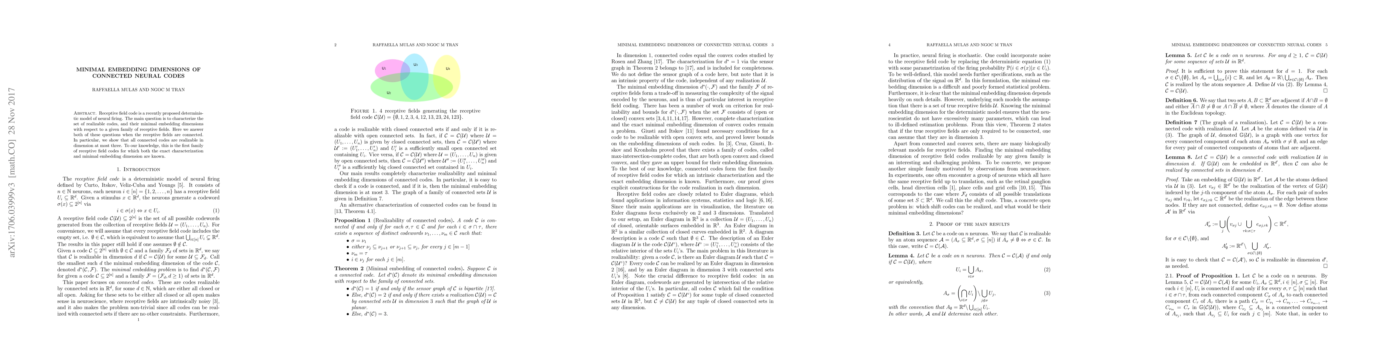 This paper provides a complete characterization of receptive field codes that can be realized by connected receptive fields, demonstrating that all such codes can be embedded in a minimal dimension of at most 3. This is the first study to determine the exact minimal embedding dimension for this family of codes.