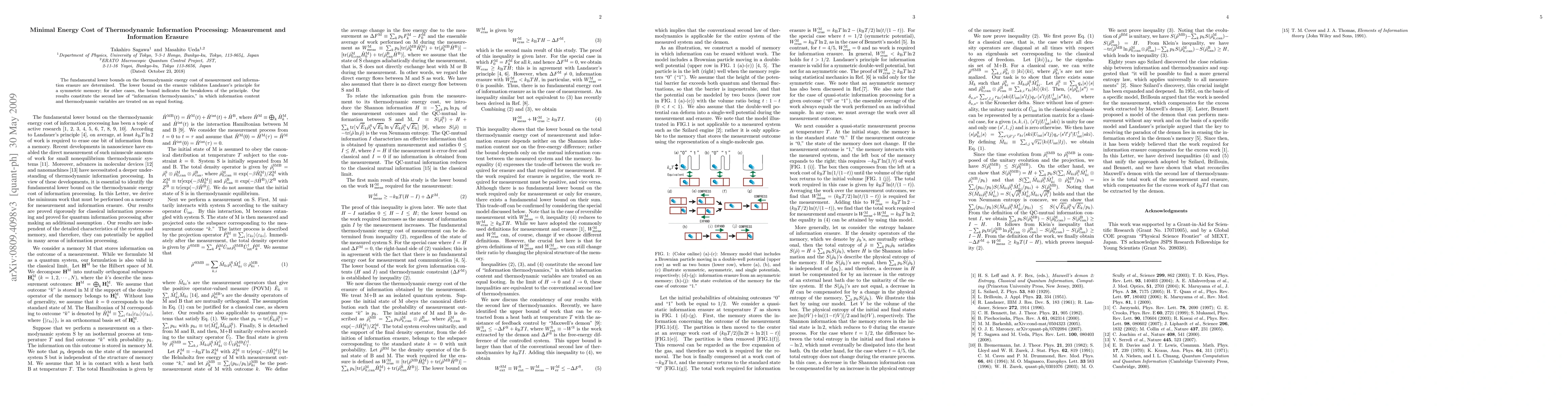 This paper establishes the minimum thermodynamic energy cost for information measurement and erasure, confirming Landauer's principle in a specific context while suggesting its breakdown in others. It proposes the second law of information thermodynamics, treating information content and thermodynamic variables equally.