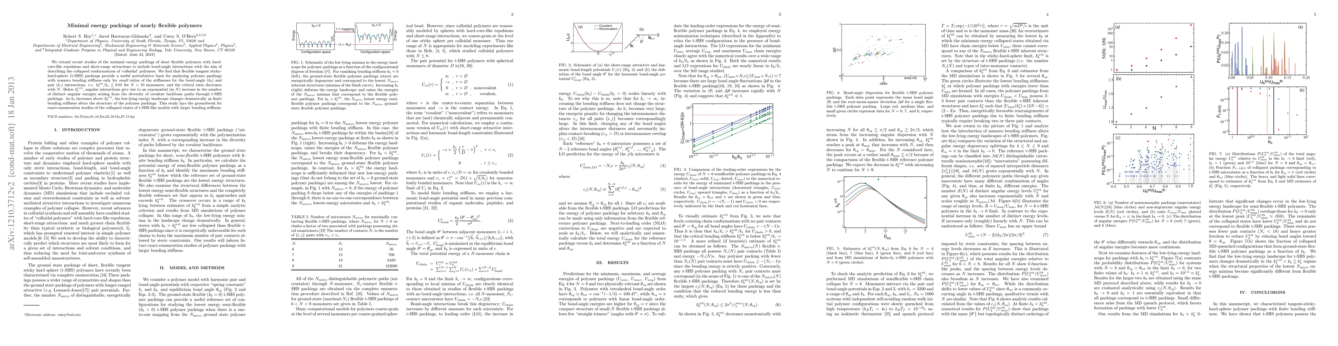 This paper investigates the minimal energy packings of nearly flexible polymers, finding that flexible tangent sticky-hard-sphere packings are effective for small stiffness ratios of bond-angle and pair interactions. It reveals a critical threshold for angular interactions that significantly alters polymer packing structures when exceeded.
