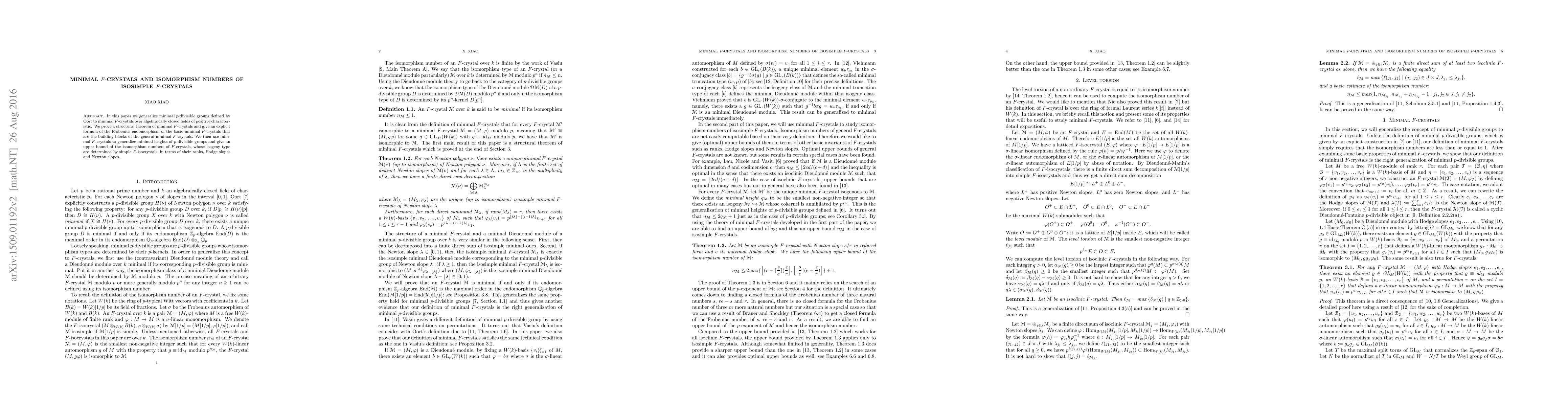 In this paper we generalize minimal $p$-divisible groups defined by Oort to $F$-crystal over an algebraically closed field of positive characteristic. We prove a structural theorem and give an explicit formula of the Frobenius endomorphism of the isosimple minimal $F$-crystals that are the building blocks of minimal $F$-crystals. We then define an invariant called the minimal height for $F$-crystals using minimal $F$-crystals and give an upper bound of the isomorphism numbers of isosimple $F$-crystals in terms of their ranks, Hodge slopes and Newton slopes.