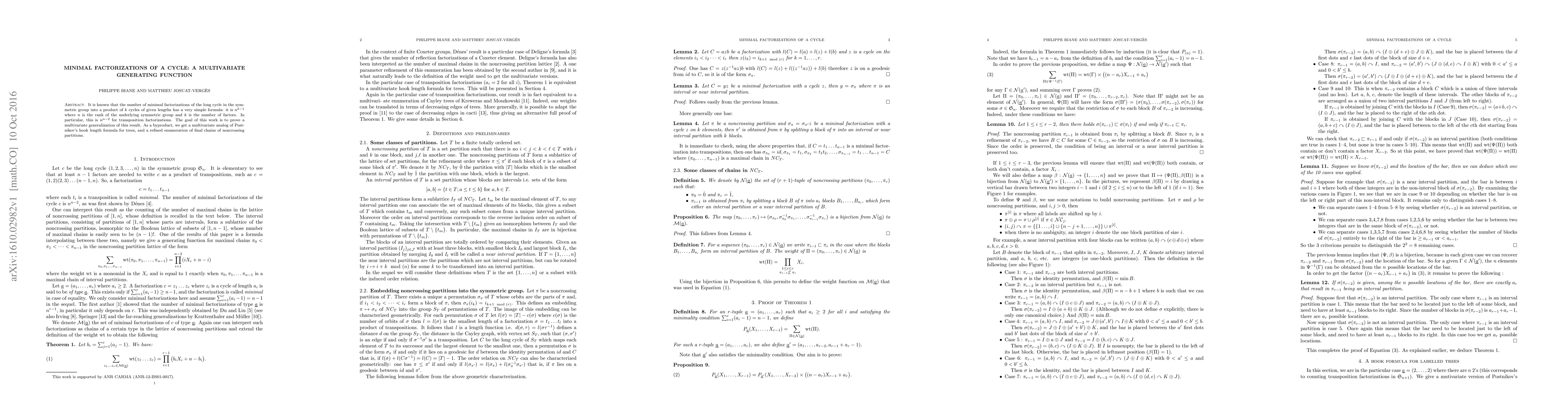 This paper proves a multivariate generalization of the simple formula for minimal factorizations of a cycle in the symmetric group, deriving a multivariate generating function and a related analog of Postnikov's hook length formula for trees, along with a refined enumeration of final chains of noncrossing partitions.