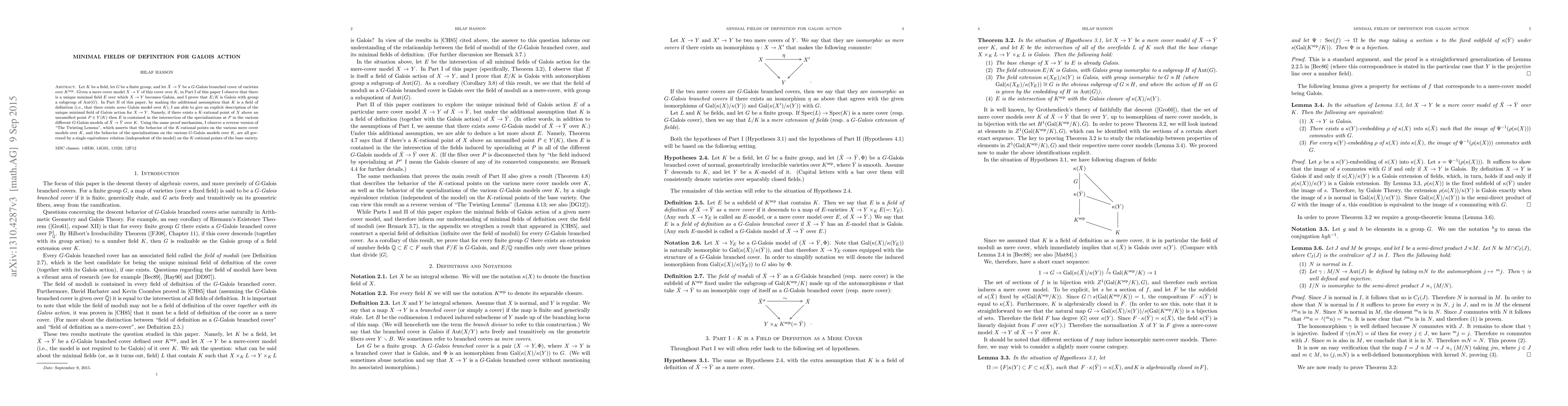 Let $K$ be a field, let $G$ be a finite group, and let $\bar X\rightarrow \bar Y$ be a $G$-Galois branched cover of varieties over $K^{sep}$. Given a mere cover model $X\rightarrow Y$ of this cover over $K$, in Part I of this paper I observe that there is a unique minimal field $E$ over which $X\rightarrow Y$ becomes Galois, and I prove that $E/K$ is Galois with group a subgroup of $Aut(G)$. In Part II of this paper, by making the additional assumption that $K$ is a field of definition (i.e., that there exists \it some \rm Galois model over $K$), I am able to give an explicit description of the unique minimal field of Galois action for $X\rightarrow Y$. Namely, if there exists a $K$-rational point of $X$ above an unramified point $P\in Y(K)$ then $E$ is contained in the intersection of the specializations at $P$ in the various different $G$-Galois models of $\bar X\rightarrow \bar Y$ over $K$. Using the same proof mechanism, I observe a reverse version of "The Twisting Lemma", which asserts that the behavior of the $K$-rational points on the various mere cover models over $K$, and the behavior of the specializations on the various $G$-Galois models over $K$, are all governed by a single equivalence relation (independent of the model) on the $K$-rational points of the base variety.