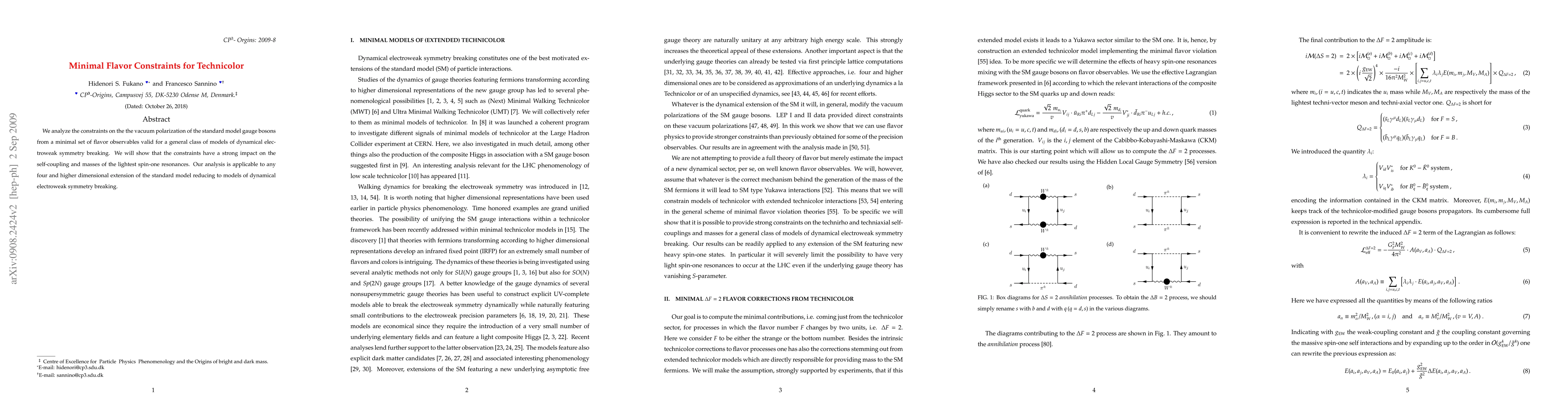 Researchers analyze constraints on vacuum polarization of gauge bosons in a minimal set of flavor observables, affecting self-coupling and masses of lightest spin-one resonances in four-dimensional extensions of the standard model.