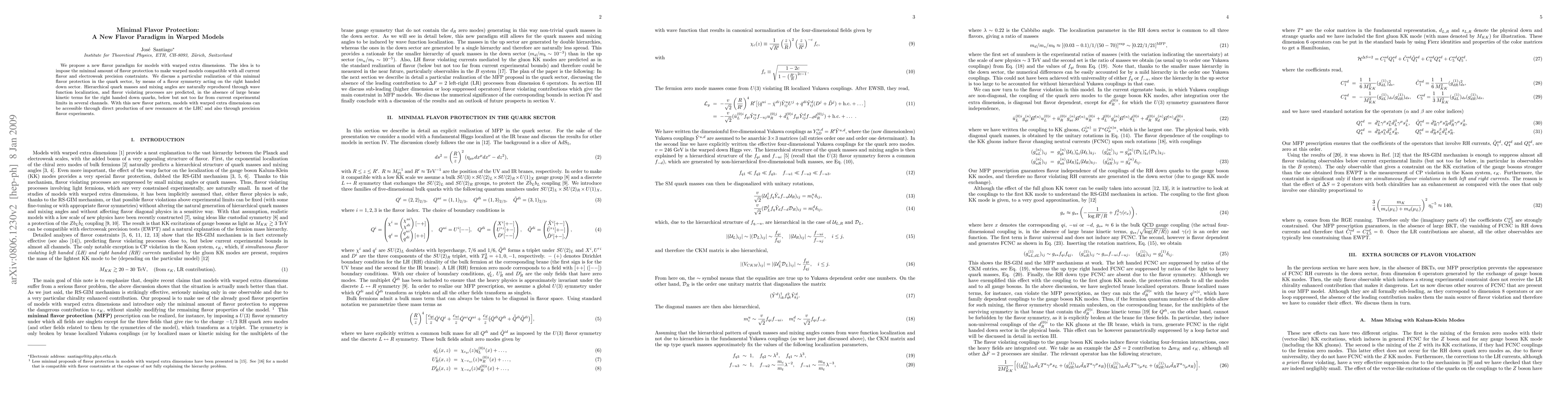 We propose a new flavor paradigm for models with warped extra dimensions. The idea is to impose the minimal amount of flavor protection to make warped models compatible with all current flavor and electroweak precision constraints. We discuss a particular realization of this minimal flavor protection in the quark sector, by means of a flavor symmetry acting on the right handed down sector. Hierarchical quark masses and mixing angles are naturally reproduced through wave function localization, and flavor violating processes are predicted, in the absence of large brane kinetic terms for the right handed down quarks, below but not too far from current experimental limits in several channels. With this new flavor pattern, models with warped extra dimensions can be accessible through direct production of new resonances at the LHC and also through precision flavor experiments.