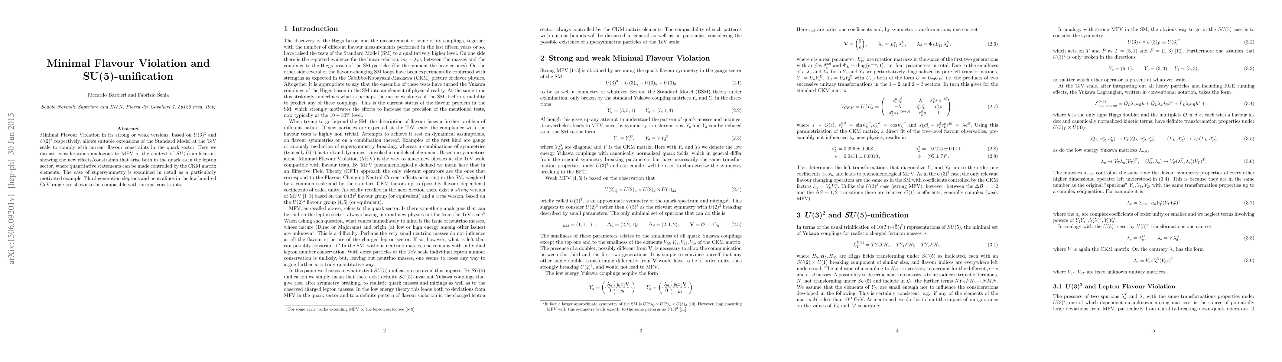 This paper explores Minimal Flavour Violation (MFV) principles within the framework of $SU(5)$-unification, examining its implications for quark and lepton sectors. It demonstrates that MFV can accommodate extensions of the Standard Model at the TeV scale, with supersymmetry providing a particularly compelling example, where third generation sleptons and neutralinos in the few hundred GeV range remain viable under current constraints.