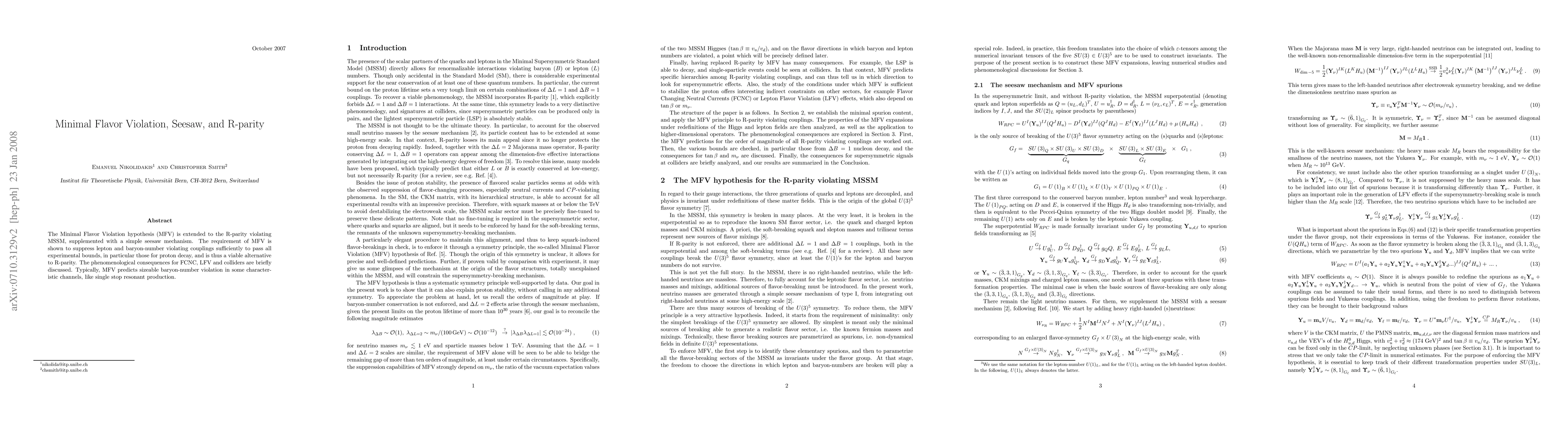 This paper extends the Minimal Flavor Violation (MFV) hypothesis to the R-parity violating MSSM with a seesaw mechanism, demonstrating that MFV sufficiently suppresses lepton and baryon-number violating couplings to meet experimental constraints, including proton decay. The study briefly discusses the implications for FCNC, LFV, and collider phenomenology, noting that MFV predicts significant baryon-number violation in specific channels such as single stop resonant production.