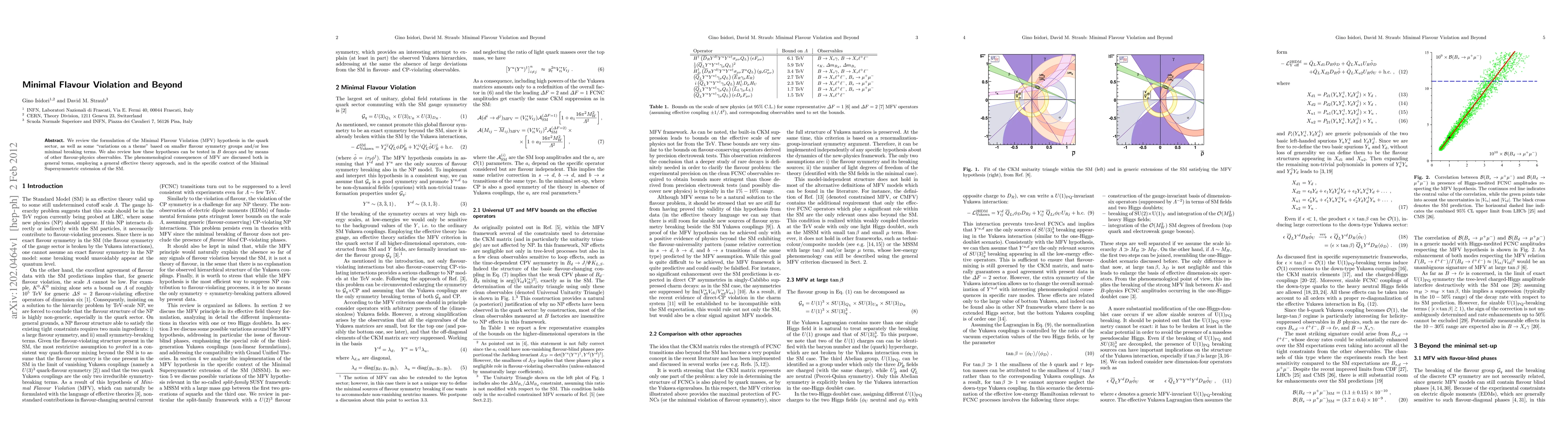 Summary: This paper reviews the Minimal Flavour Violation (MFV) hypothesis in quarks and explores its variations based on reduced symmetry. It discusses testing these hypotheses through B decays and other flavour observables, examining both general and supersymmetric model implications.