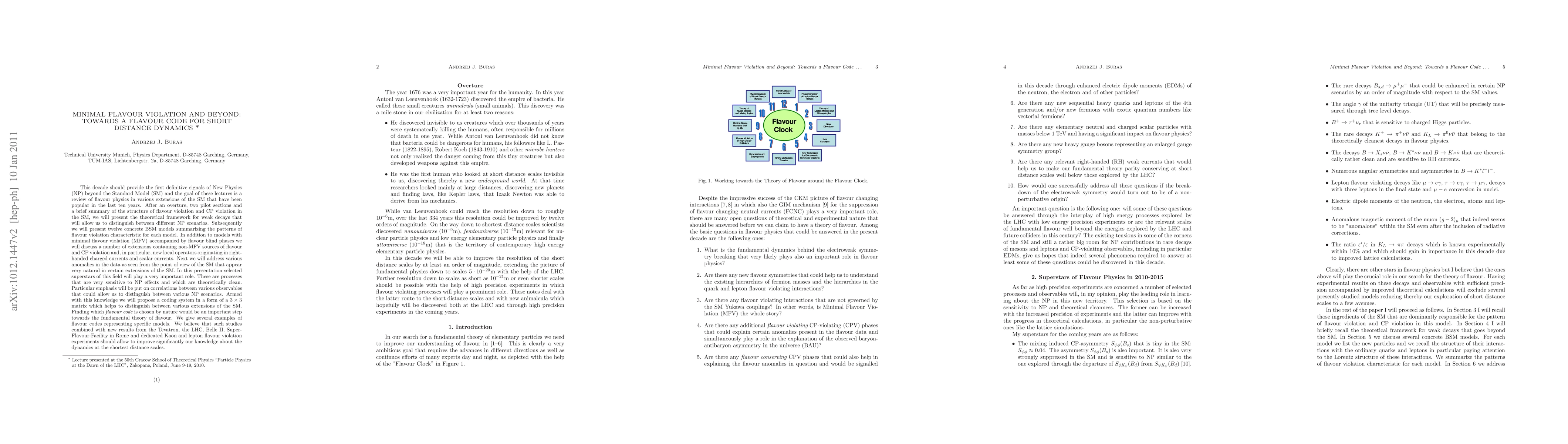 This decade should provide the first definitive signals of New Physics (NP) beyond the Standard Model (SM) and the goal of these lectures is a review of flavour physics in various extensions of the SM that have been popular in the last ten years. After an overture, two pilot sections and a brief summary of the structure of flavour violation and CP violation in the SM, we will present the theoretical framework for weak decays that will allow us to distinguish between different NP scenarios. Subsequently we will present twelve concrete BSM models summarizing the patterns of flavour violation characteristic for each model. In addition to models with minimal flavour violation (MFV) accompanied by flavour blind phases we will discuss a number of extensions containing non-MFV sources of flavour and CP violation and, in particular, new local operators originating in right-handed charged currents and scalar currents. Next we will address various anomalies in the data as seen from the point of view of the SM that appear very natural in certain extensions of the SM. In this presentation selected superstars of this field will play a very important role. These are processes that are very sensitive to NP effects and which are theoretically clean. Particular emphasis will be put on correlations between various observables that could allow us to distinguish between various NP scenarios. Armed with this knowledge we will propose a coding system in a form of a 3*3 matrix which helps to distinguish between various extensions of the SM. Finding which flavour code is chosen by nature would be an important step towards the fundamental theory of flavour. We give several examples of flavour codes representing specific models.
