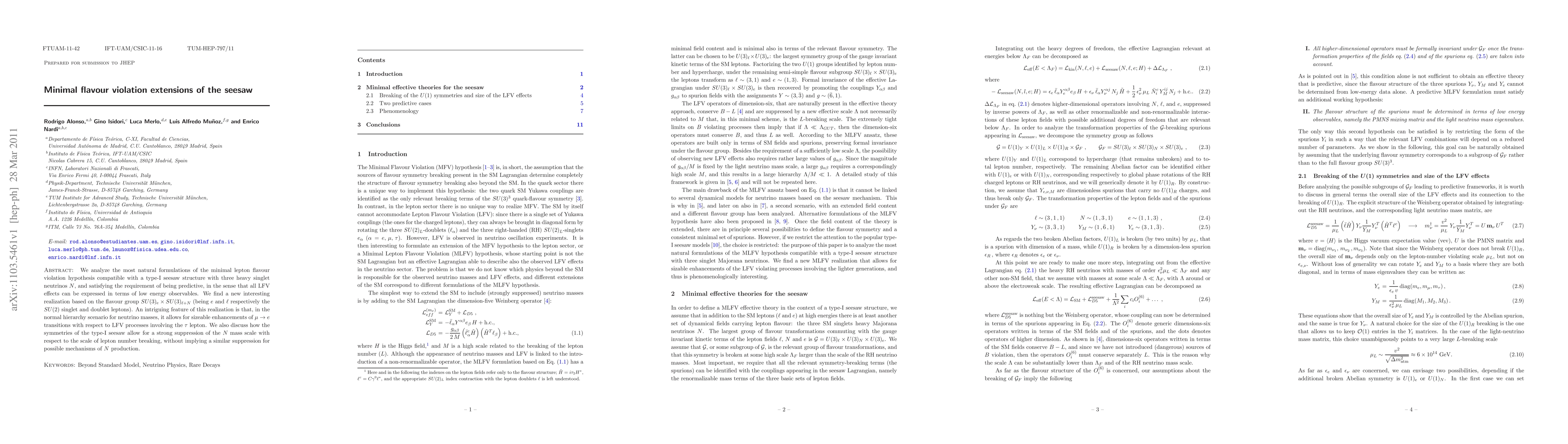 The research analyzes minimal lepton flavor violation (MLFV) extensions of the type-I seesaw mechanism, focusing on predictive formulations where LFV effects can be expressed in terms of low-energy observables.
