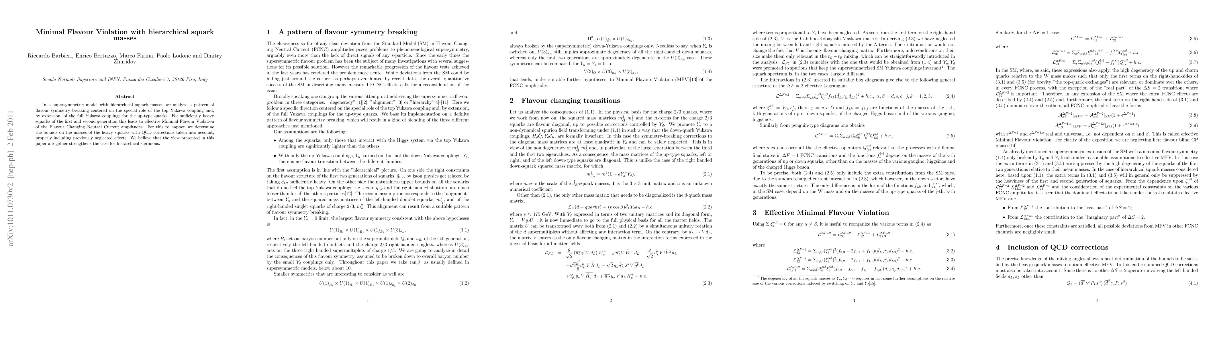 In a supersymmetric model with hierarchical squark masses we analyze a pattern of flavour symmetry breaking centered on the special role of the top Yukawa coupling and, by extension, of the full Yukawa couplings for the up-type quarks. For sufficiently heavy squarks of the first and second generation this leads to effective Minimal Flavour Violation of the Flavour Changing Neutral Current amplitudes. For this to happen we determine the bounds on the masses of the heavy squarks with QCD corrections taken into account, properly including previously neglected effects. We believe that the view presented in this paper altogether strengthens the case for hierarchical sfermions.